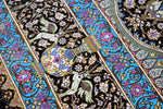 The borders are woven with luxurious decorative patterns, highlighting the craftsmanship of the finest details, and feature magnificent animal and plant designs, as well as storytelling elements, giving the carpet a mysterious and dramatic feel.