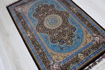 This is the ultimate work of art by the Albar Atelier, and is one of the most eye-catching designs among traditional Persian carpets. At the center is a beautiful medallion intricately painted, and the surrounding Rachak pattern enhances its brilliance. The color scheme is a perfect combination of vibrant sky blue and brown, creating a perfect blend of splendor and serenity.