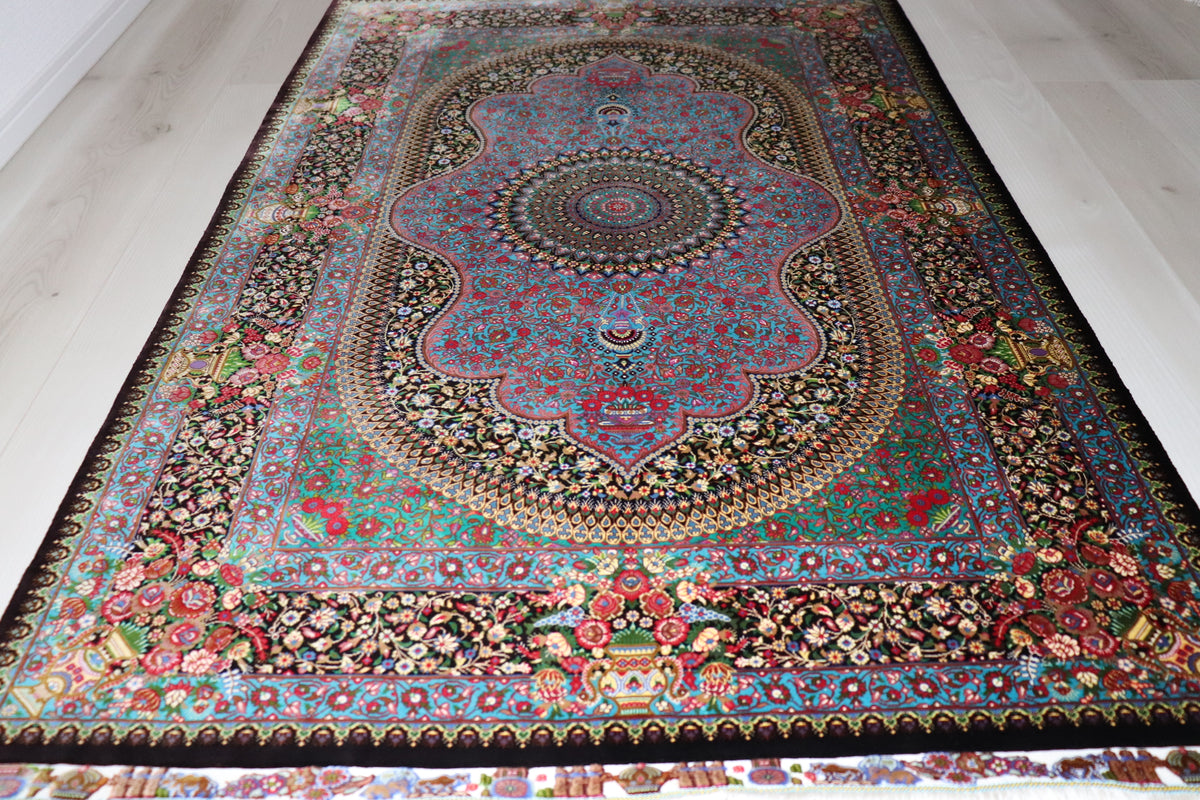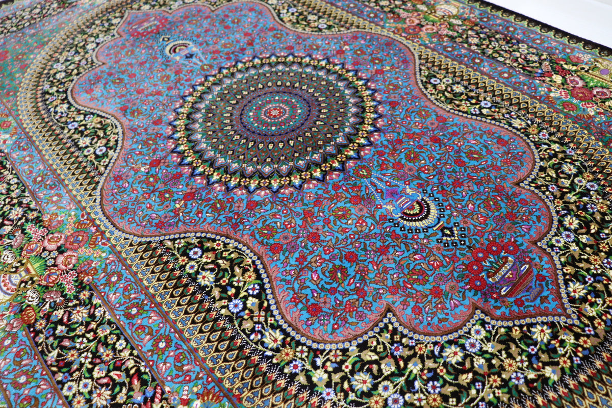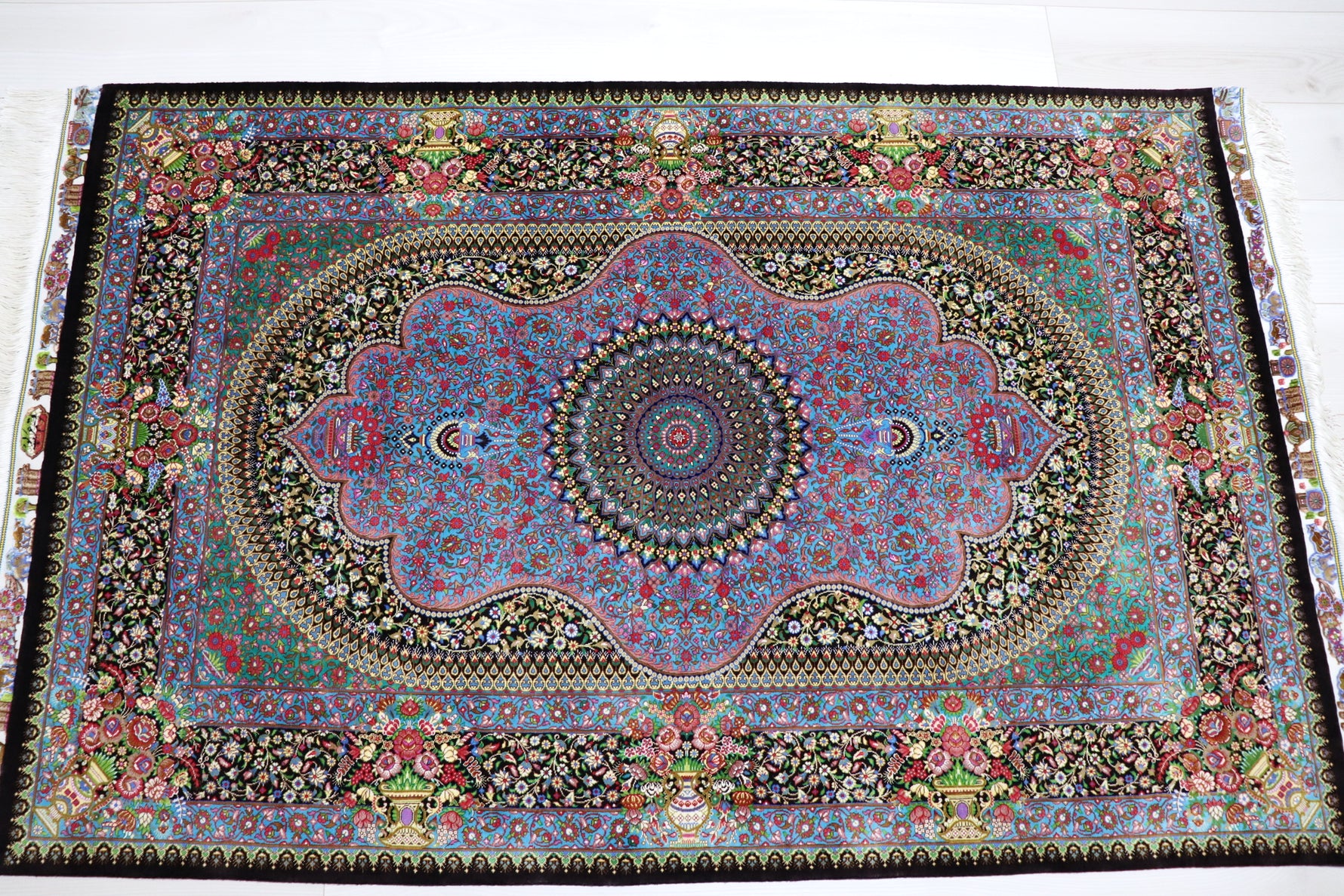 Persian carpet from Qom, 100% silk, Albar Studio, living space size