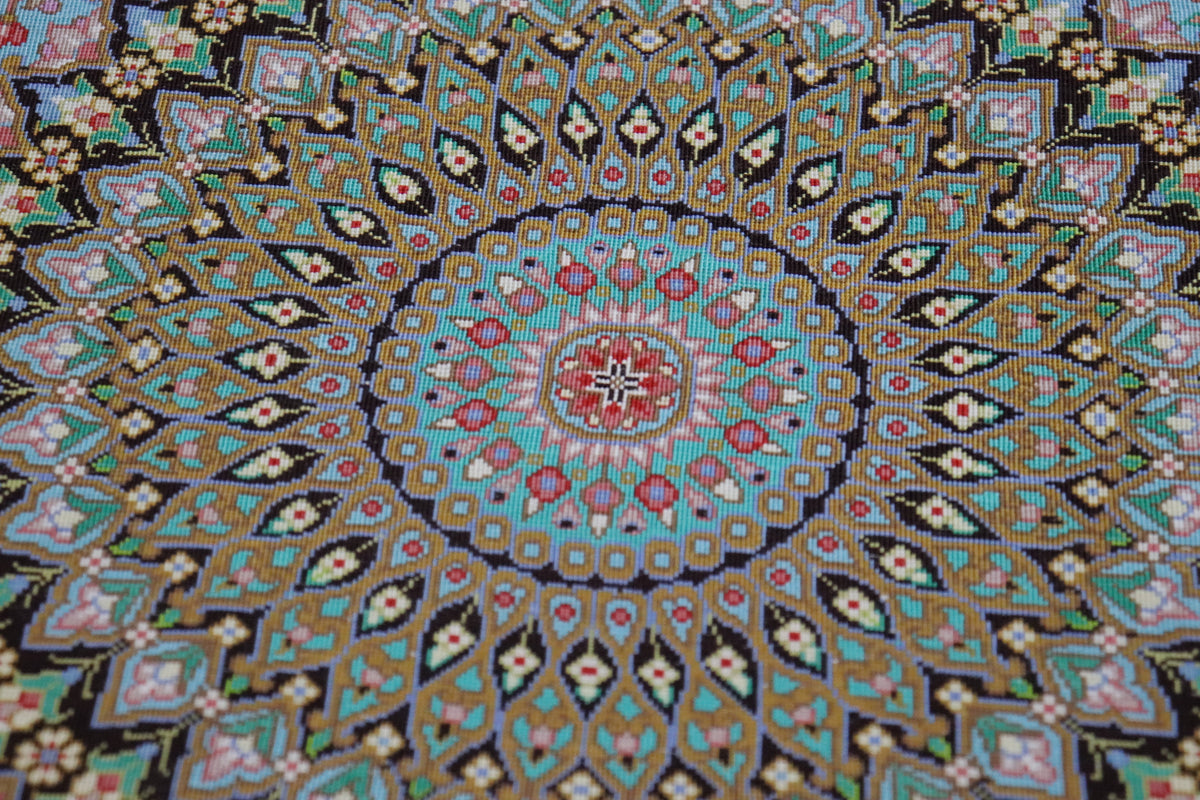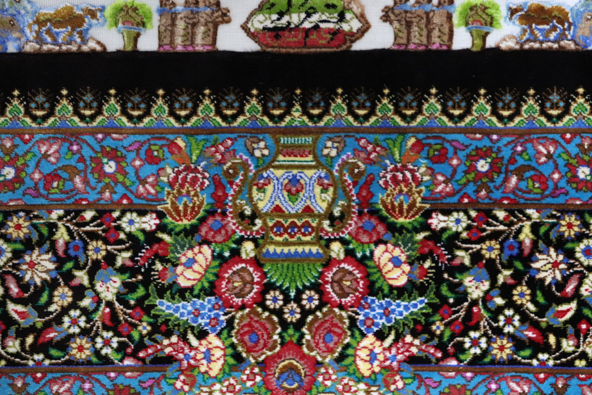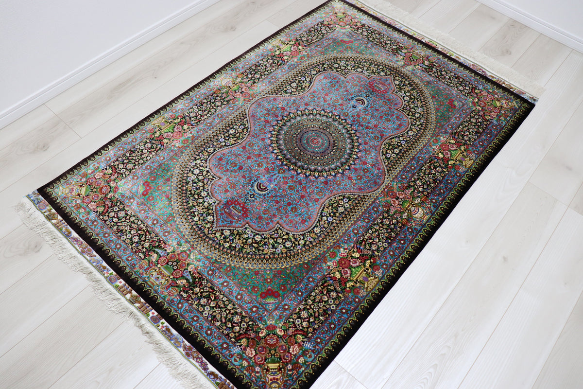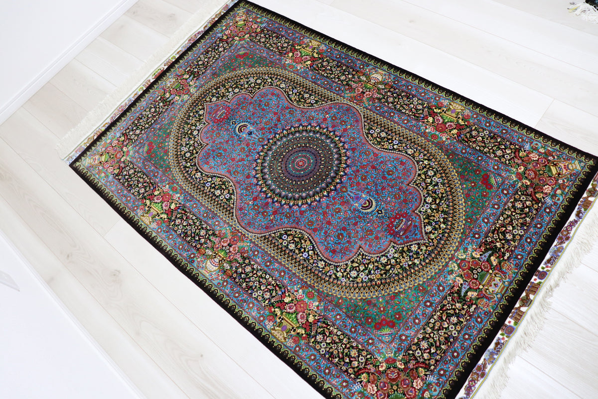 Persian carpet from Qom, 100% silk, Albar Studio, living space size