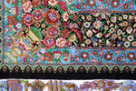 In addition, the border is dotted with plants and traditional motifs, creating a perfect balance between luxury and harmony. The brown background is woven with green, red, blue and gold tones, giving the entire carpet a richness and depth. The design, which has been carefully calculated down to the smallest detail, demonstrates the high level of artistry of the atelier.