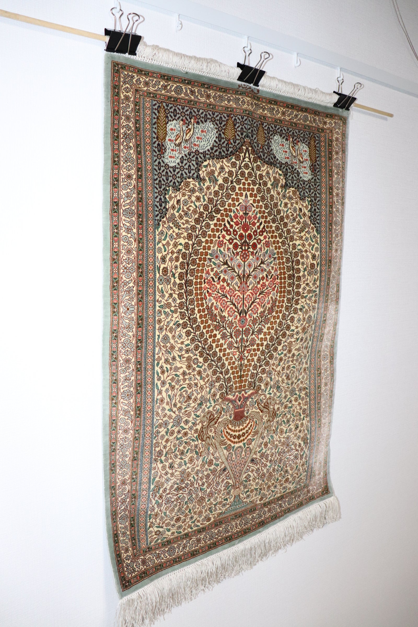 Persian carpet from Qom, 100% silk, Albar Studio original, paisley pattern, small size, perfect for wall decoration, gorgeous masterpiece