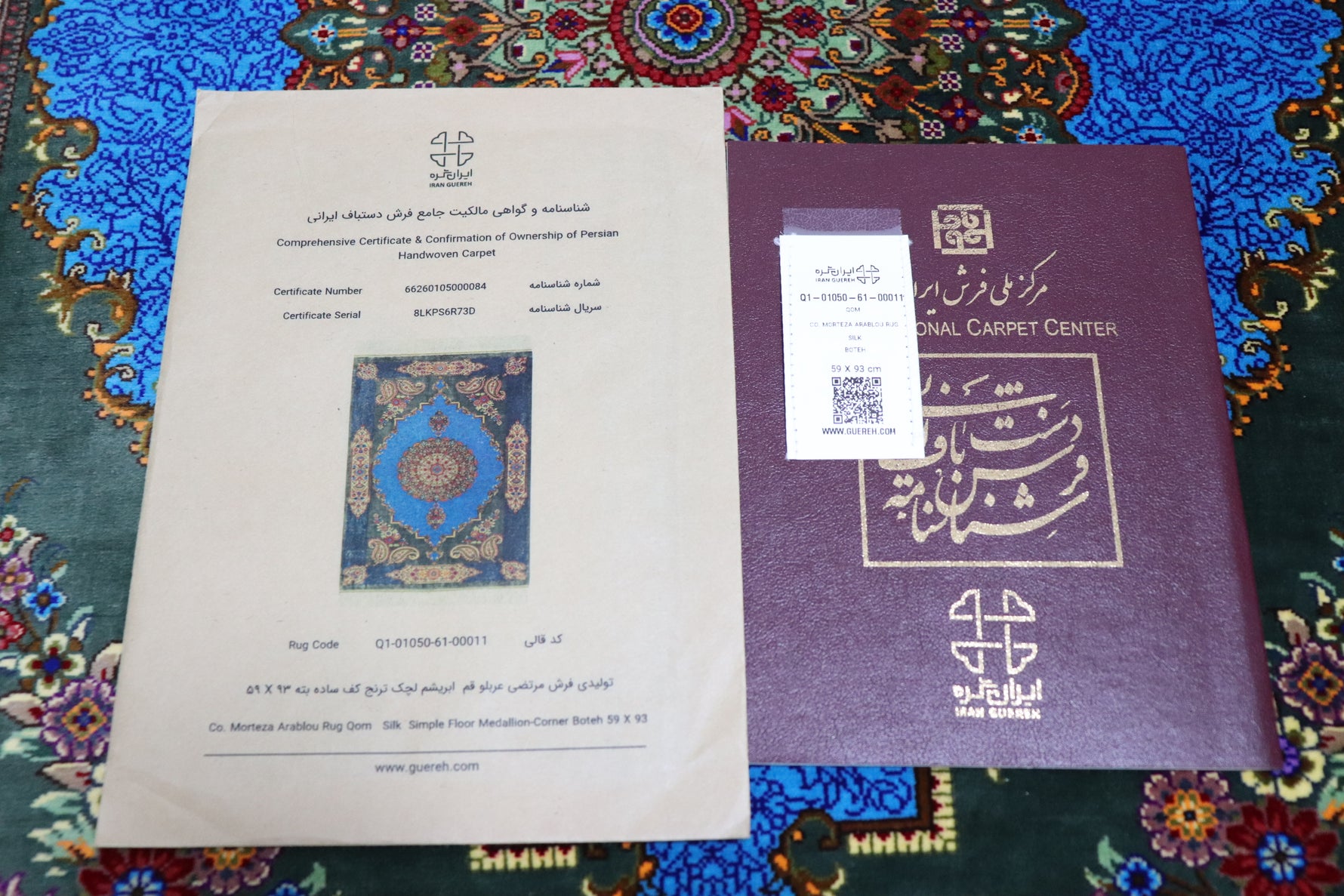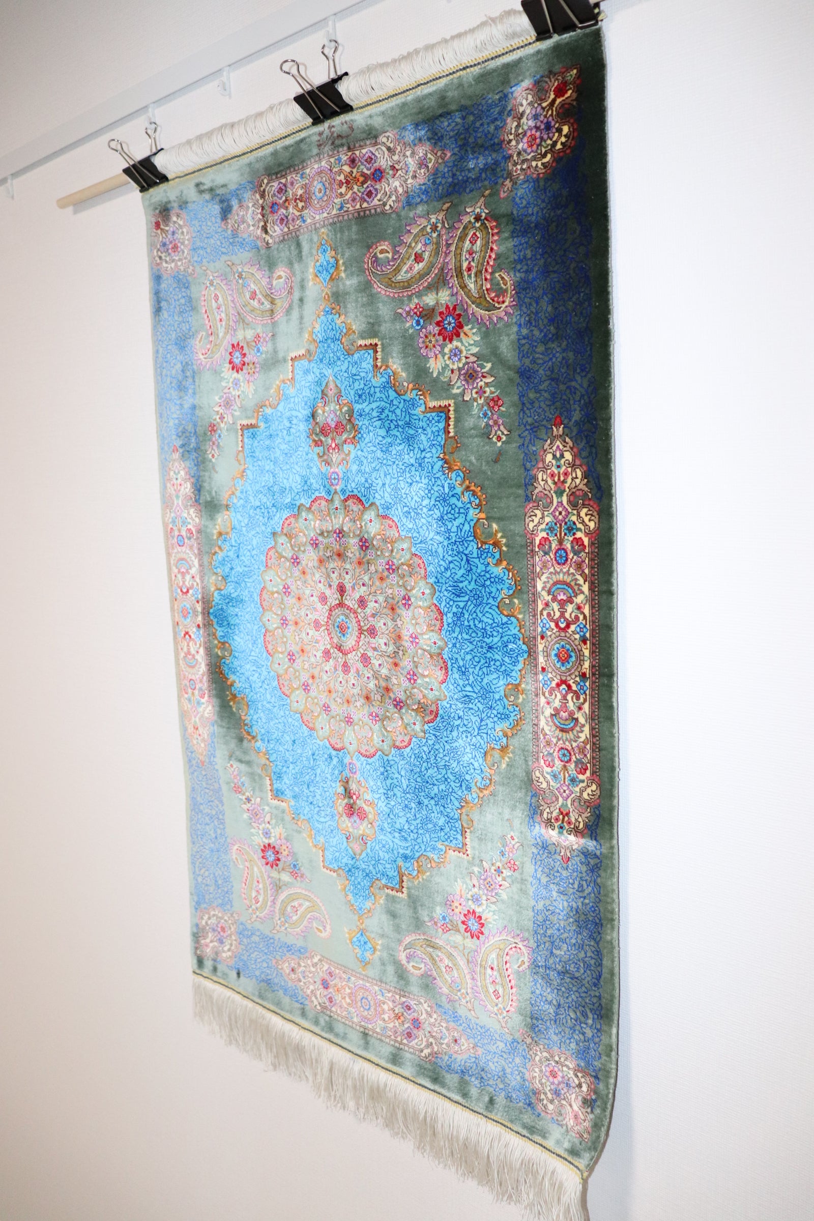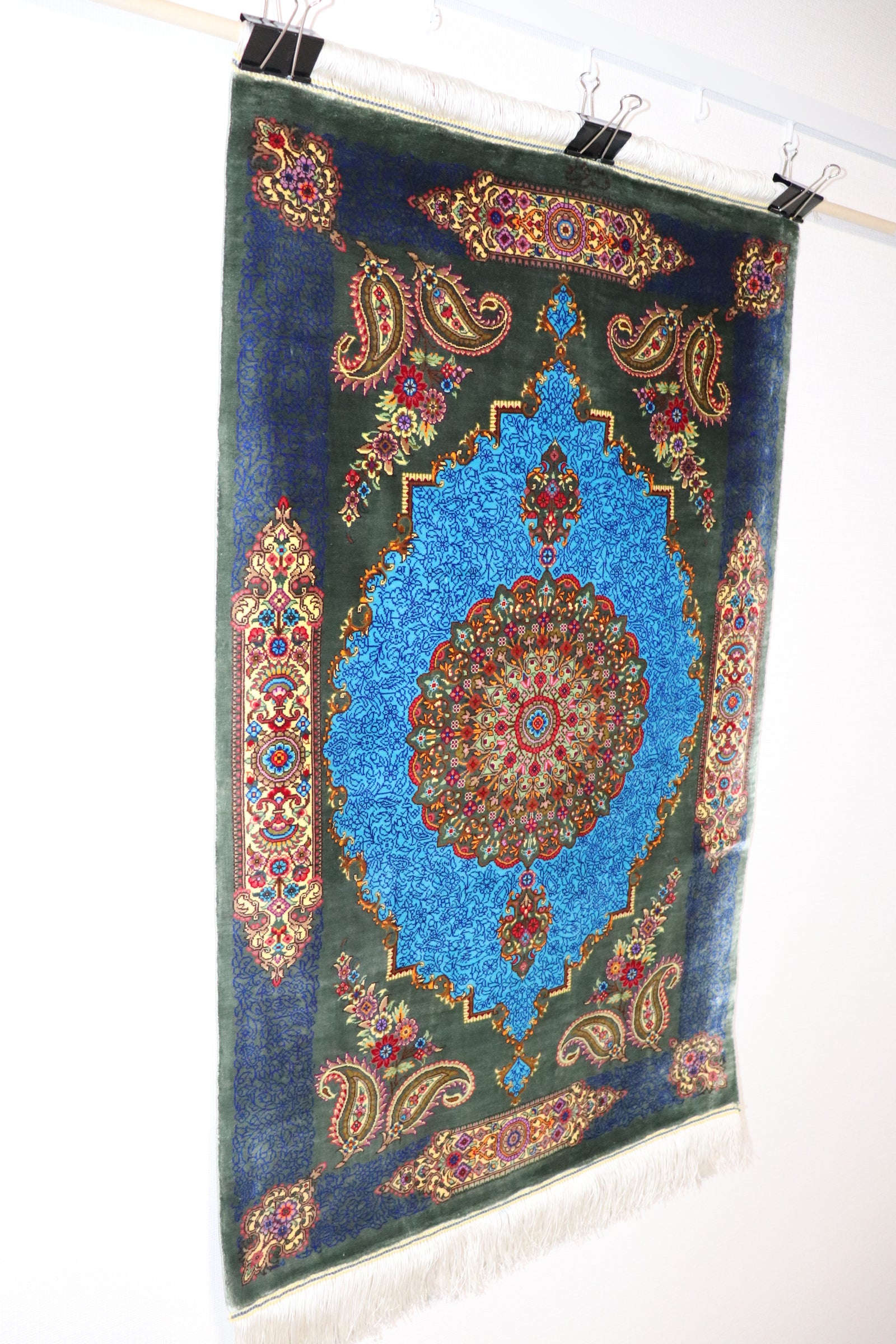 Persian carpet from Qom, 100% silk, Albar Studio original, paisley pattern, small size, perfect for wall decoration, gorgeous masterpiece