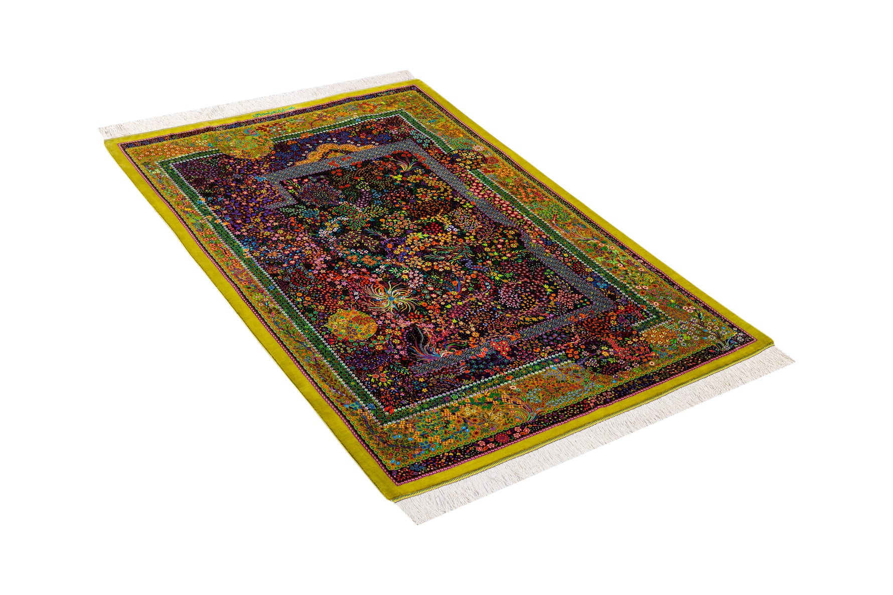 Silk Persian carpet from Eshagi Studio in Qum (Tree design)