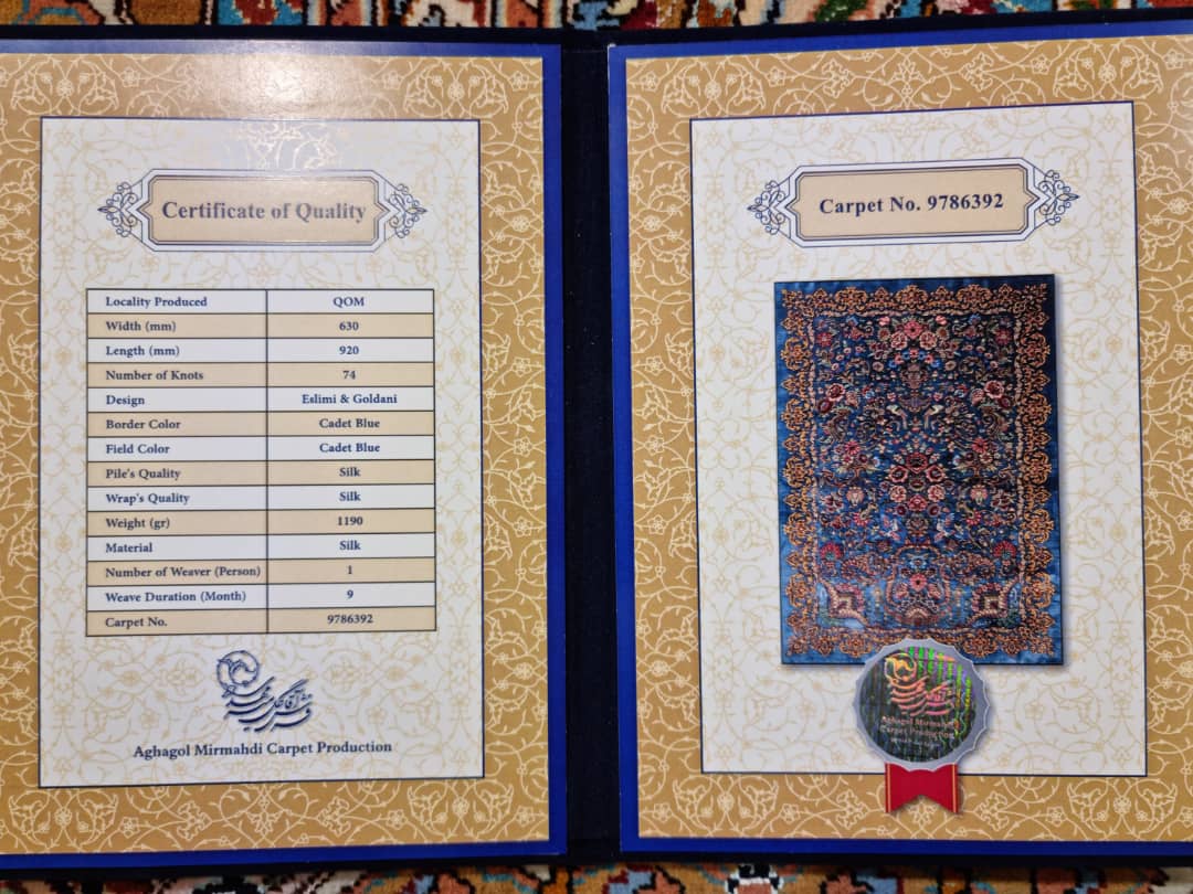 Persian carpet from Qom 100% silk Mirmahdi/Mirmehidi workshop ID:12006