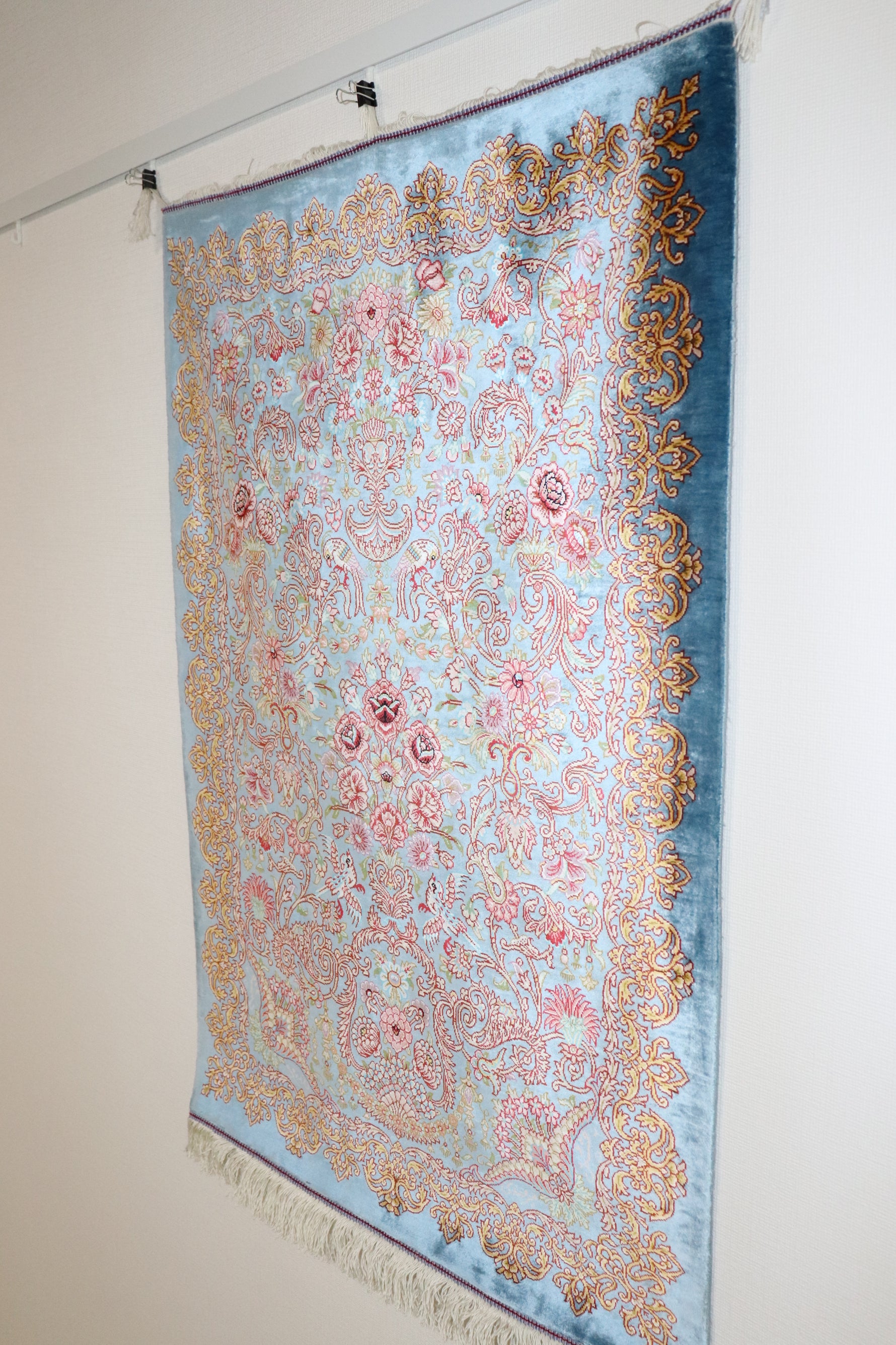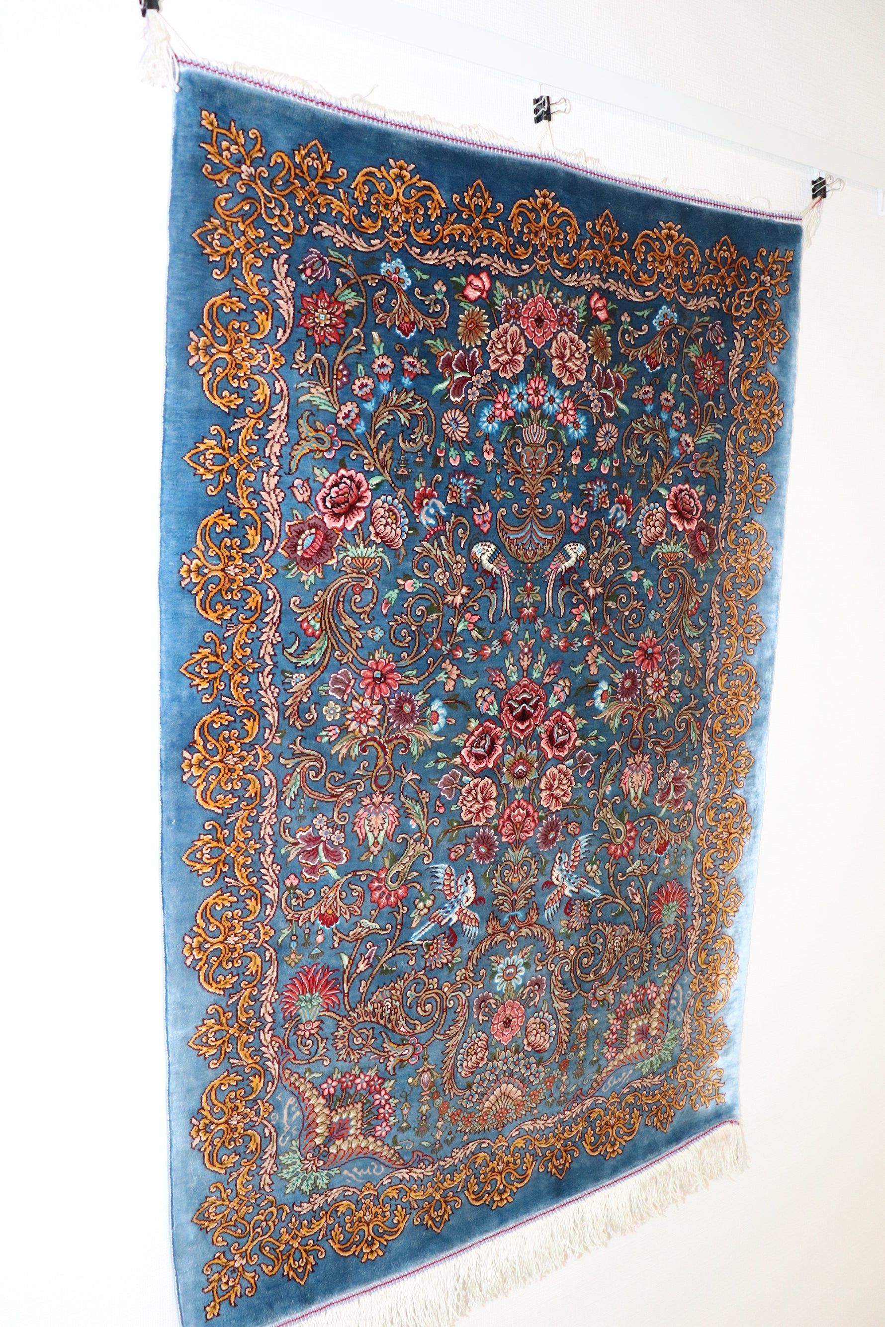 Persian carpet, 100% silk from Qom, Mirmehidi Atelier, the vibrant royal blue and flowers combine beautifully.