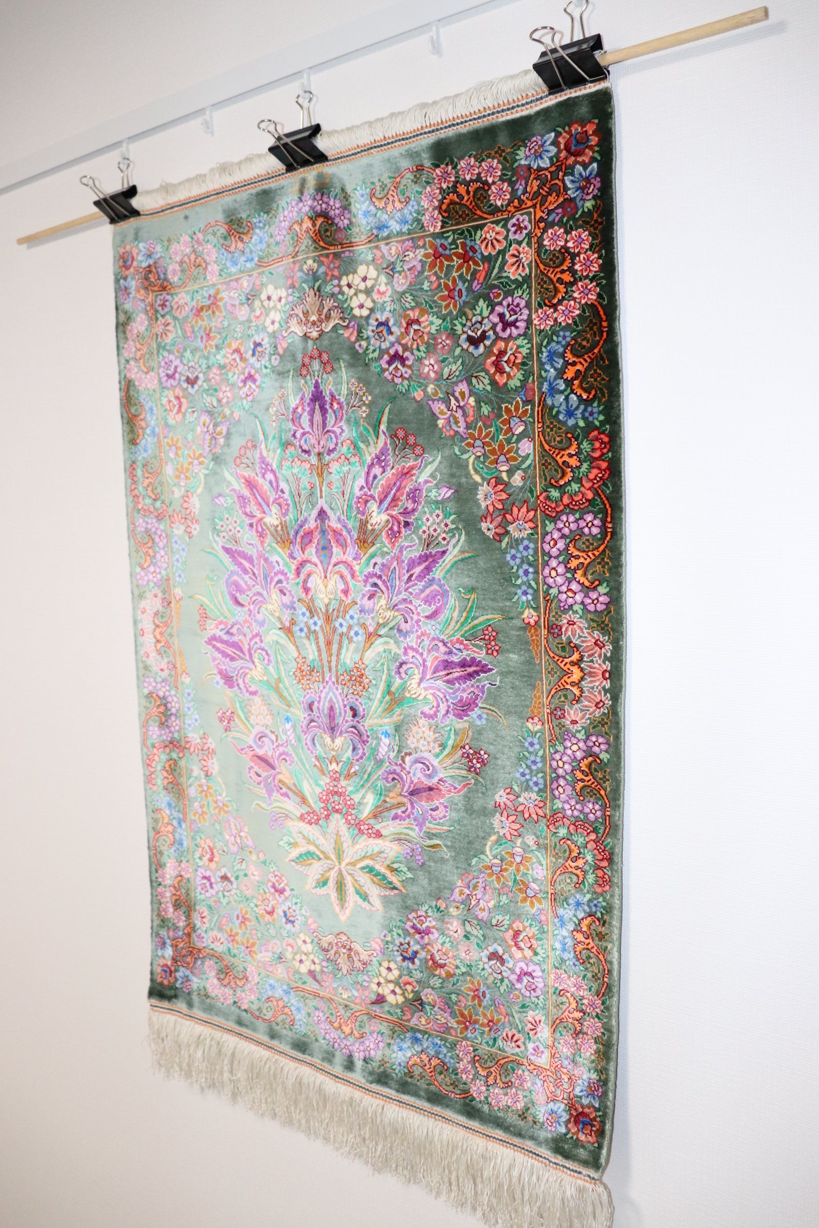 It is carefully hand-woven down to the last detail, and features the smooth feel and beautiful luster that are unique to silk.It is an exceptional product that combines artistic value and functionality as a wall hanging or floor covering.