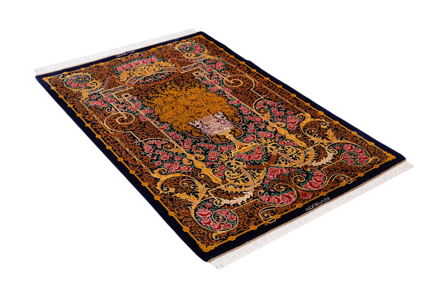 Persian carpet from Qom 100% silk Mirmehidi workshop Living space size
