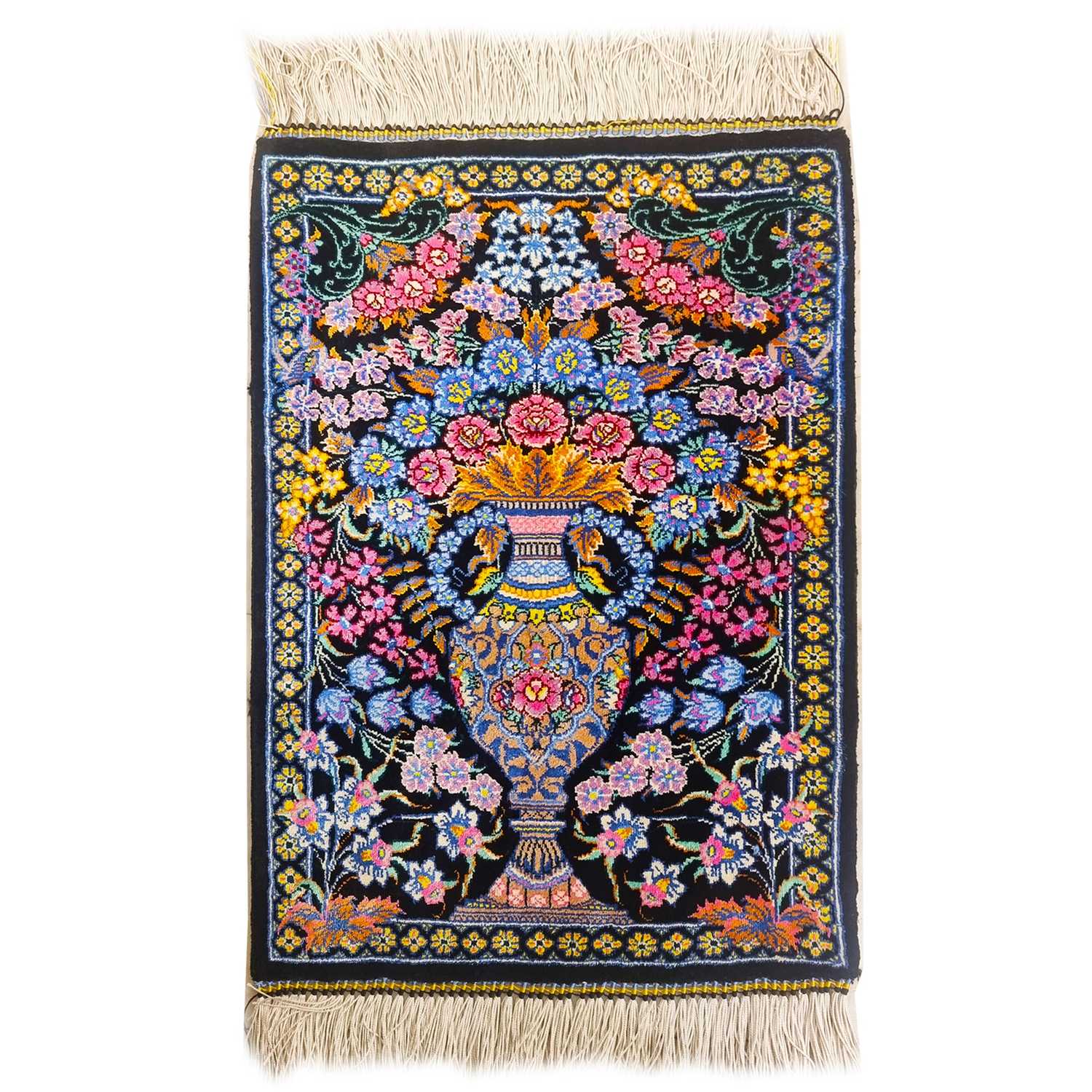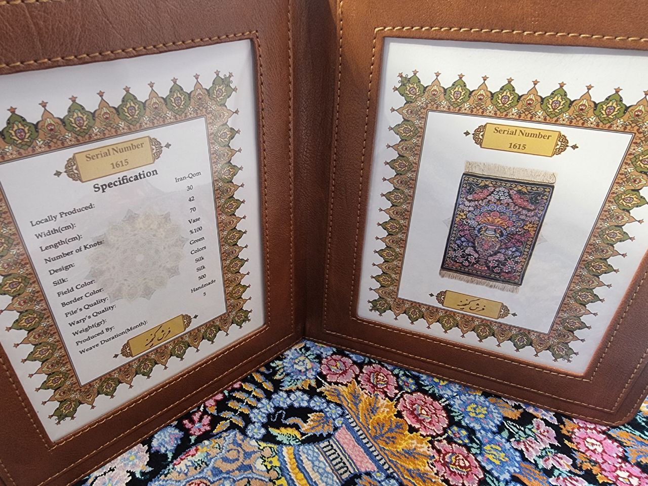Persian carpet from Qom, 100% silk, Albar Studio original, paisley pattern, small size, perfect for wall decoration, gorgeous masterpiece