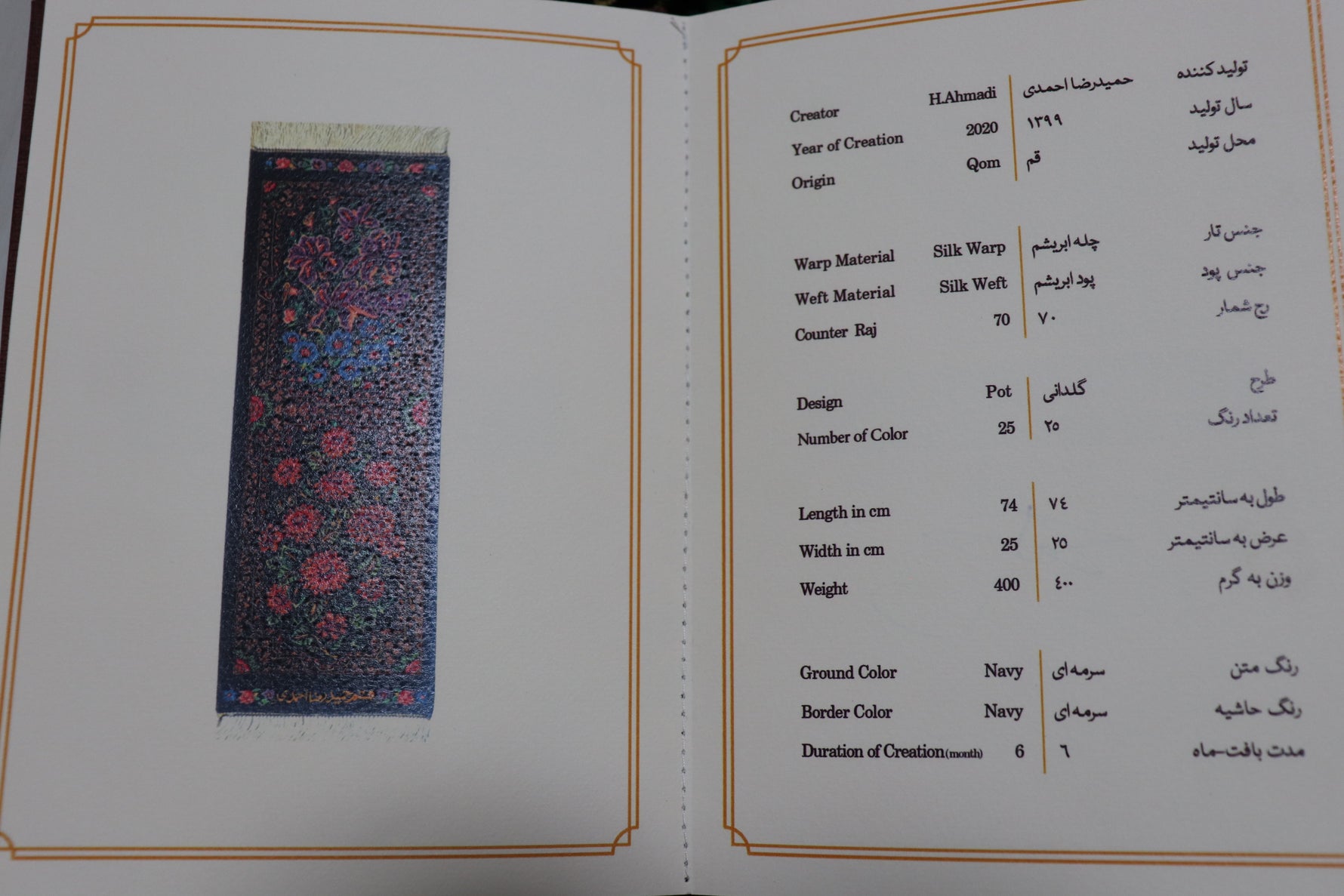 Persian carpet from Qom 100% silk Ahmadi workshop ID:8029 Runner size