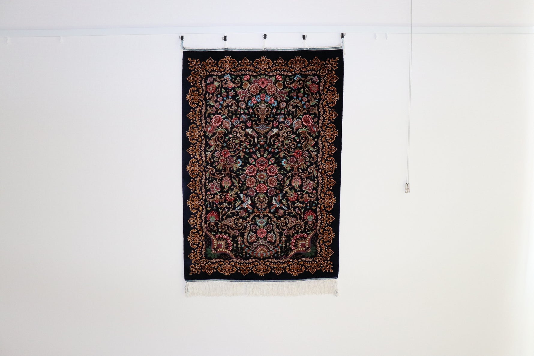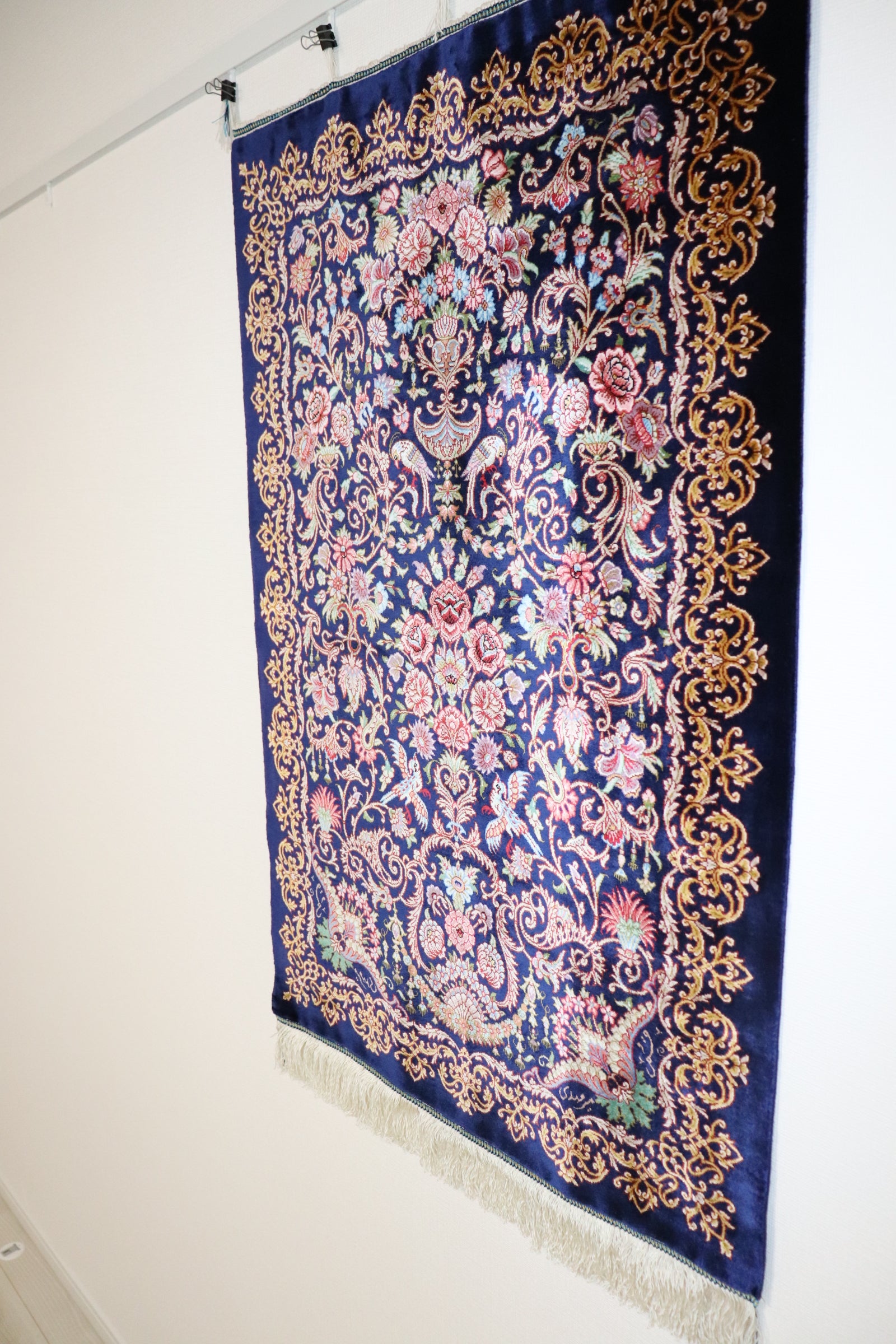 Persian carpet from Qom, 100% silk, Albar Studio original, paisley pattern, small size, perfect for wall decoration, gorgeous masterpiece