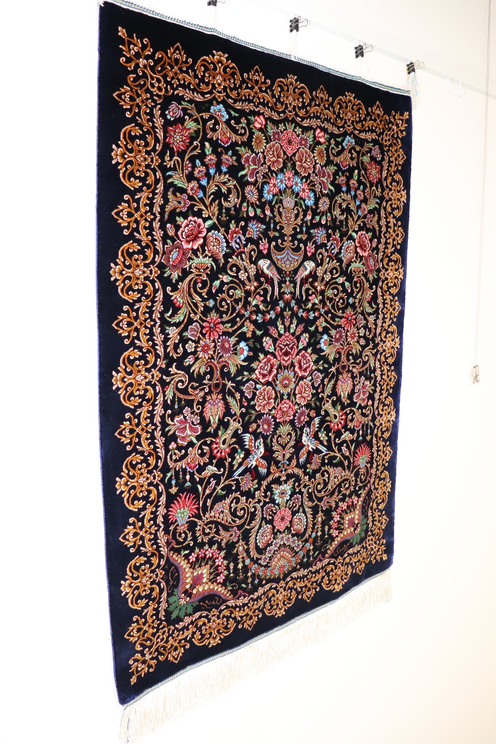 Persian carpet, 100% silk from Qom, Mirmehidi Atelier, the vibrant royal blue and flowers combine beautifully.