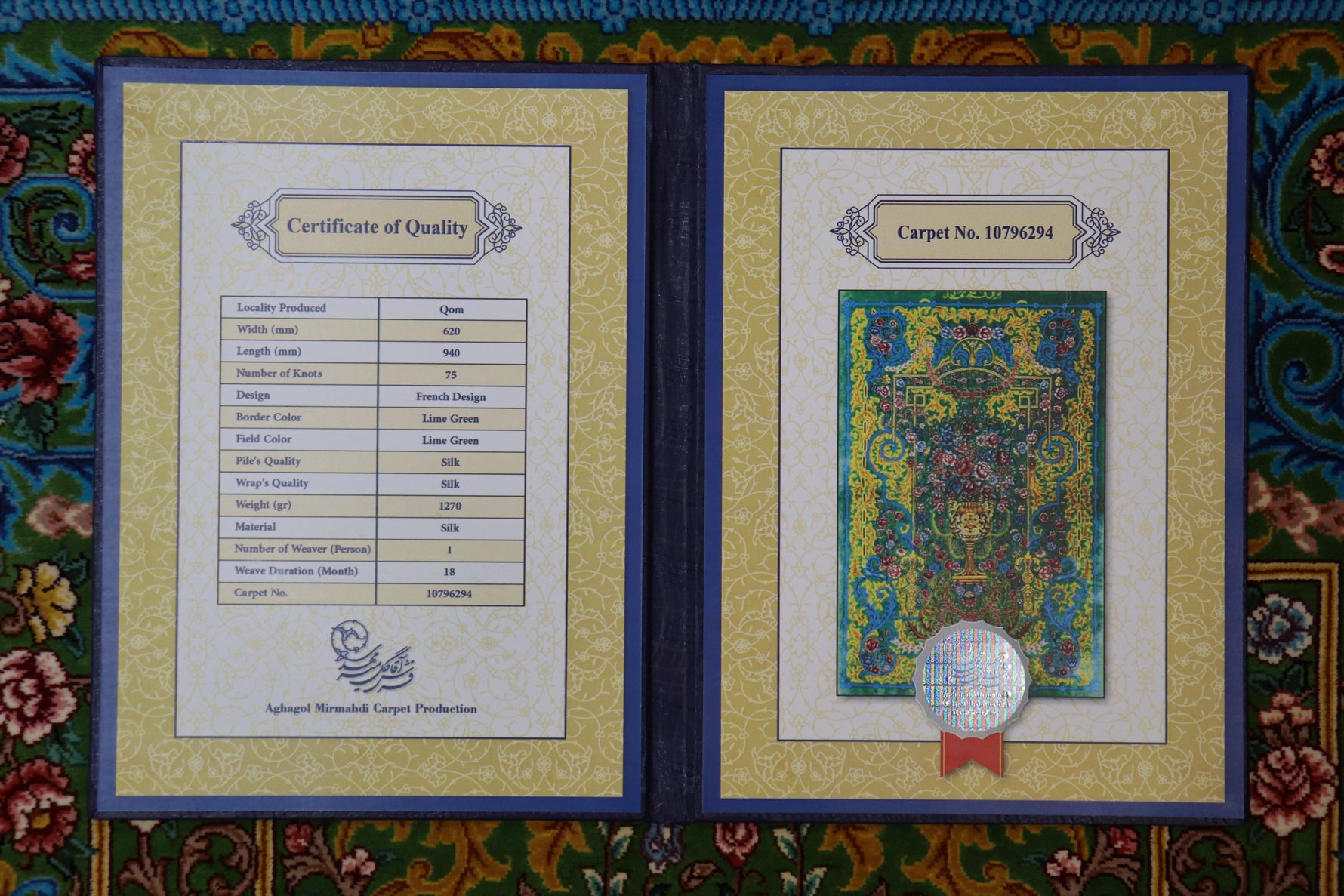 Persian carpet, 100% silk from Qom, Mirmehidi workshop