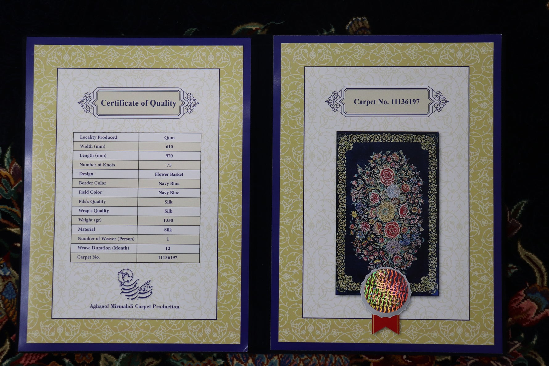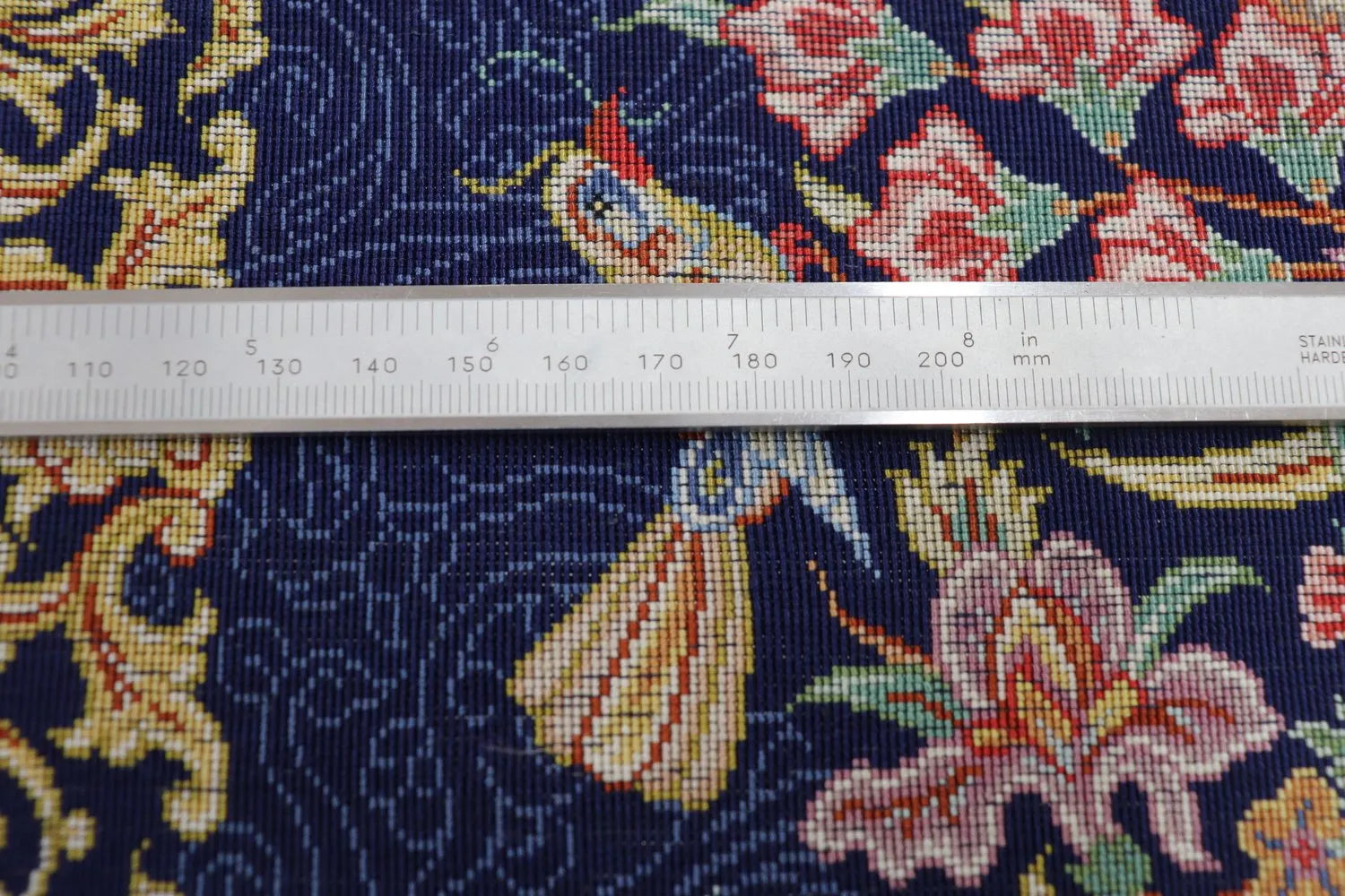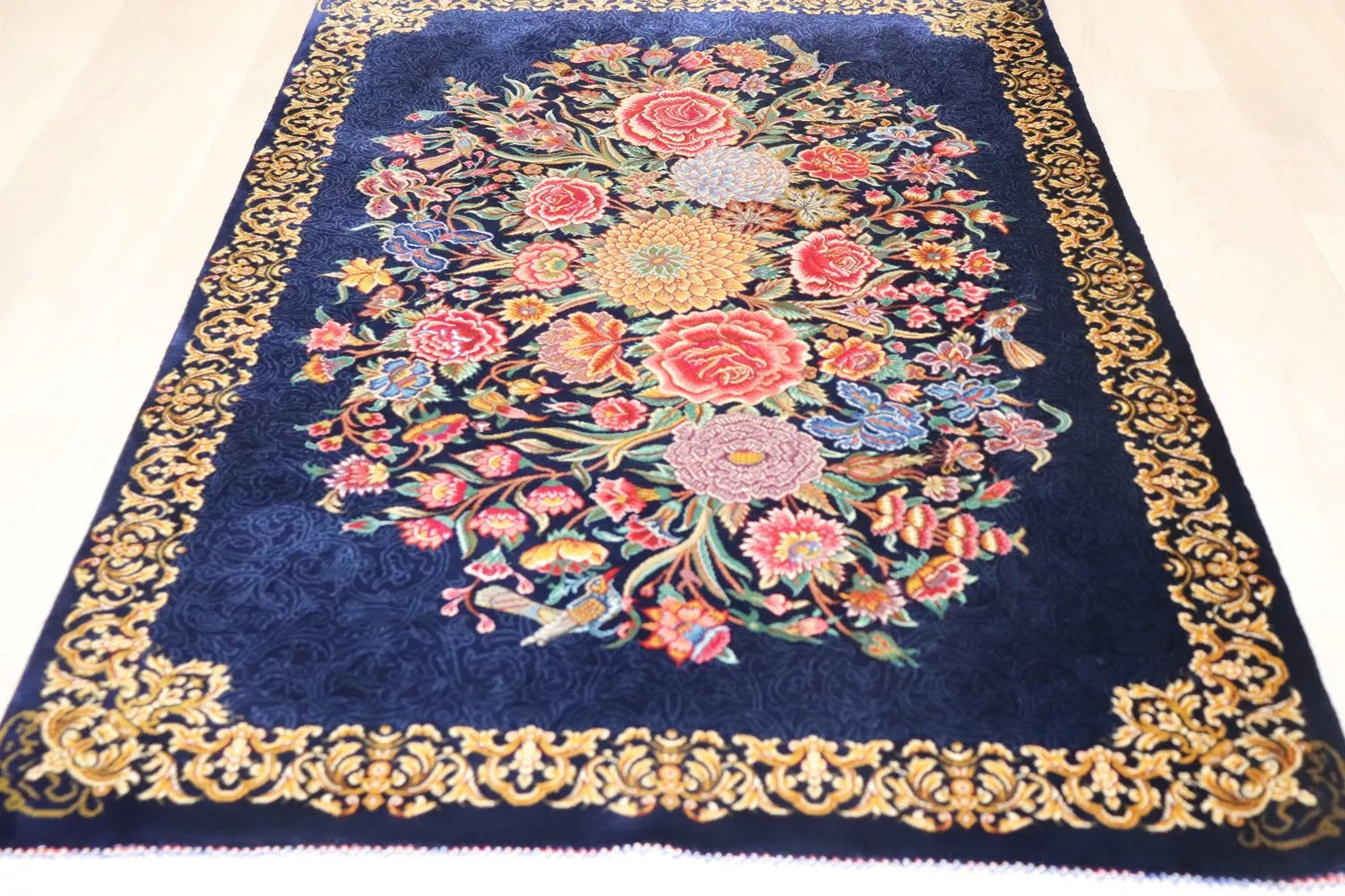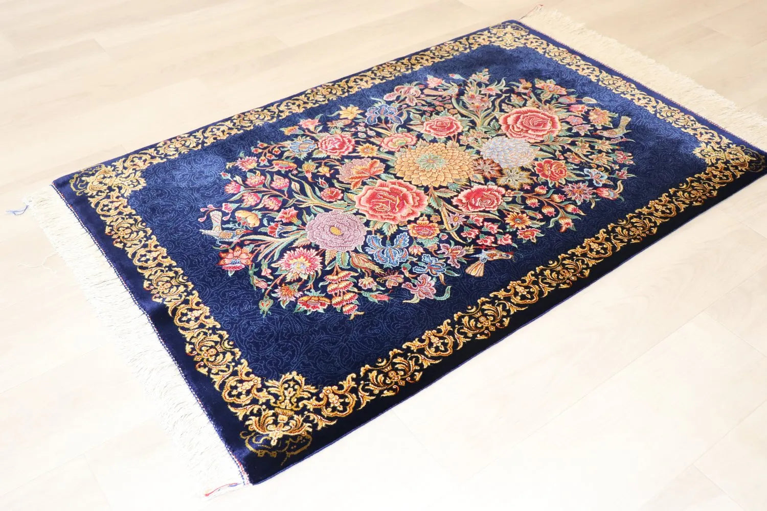 Persian carpet, 100% silk from Qom, Mirmehidi Atelier, navy blue