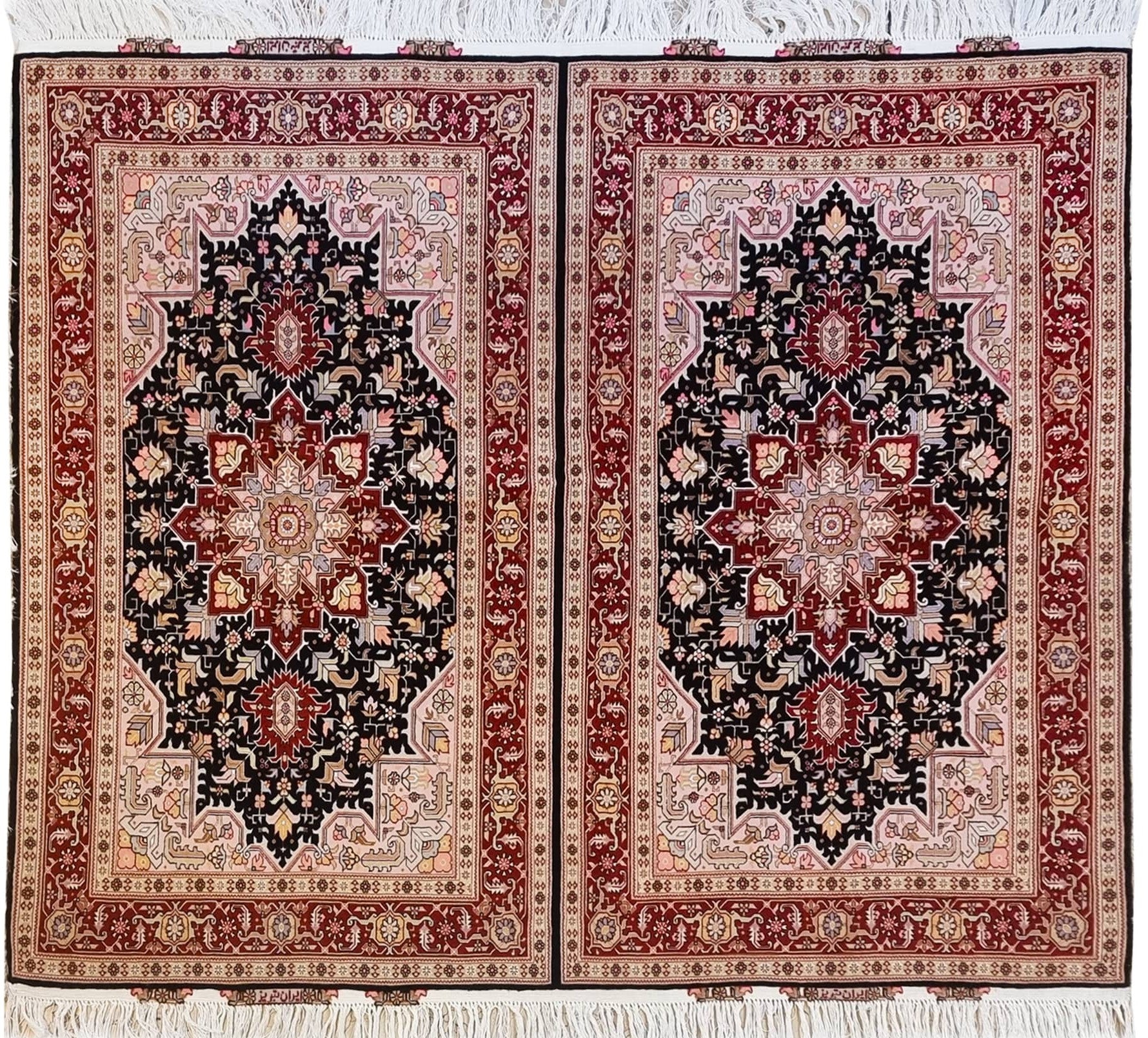 [Made in Tabriz] Helis pattern black x silk decoration (approximately 1.5m2 / pair), a dramatic Helis pattern with silk decoration on a black background. A striking presence with a 1.5m2 pair.