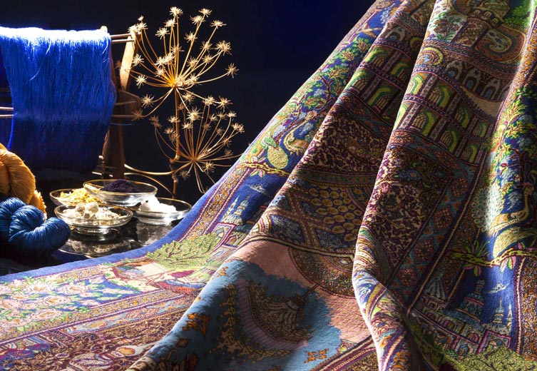 At Jamshidi Atelier, all processes are carried out in-house, ensuring strict quality control. Skilled craftsmen twist, dye, and weave the threads by hand. They use the finest silk threads and traditional natural dyes to create carpets that do not fade and retain their beautiful luster. In addition, their unique technique of twisting threads of up to eight colors together allows them to express deep colors. The ultra-high density weave of 12 to 14 knots per cm vividly depicts the finest details of architectural patterns and flora and fauna. These commitments result in unparalleled quality.
