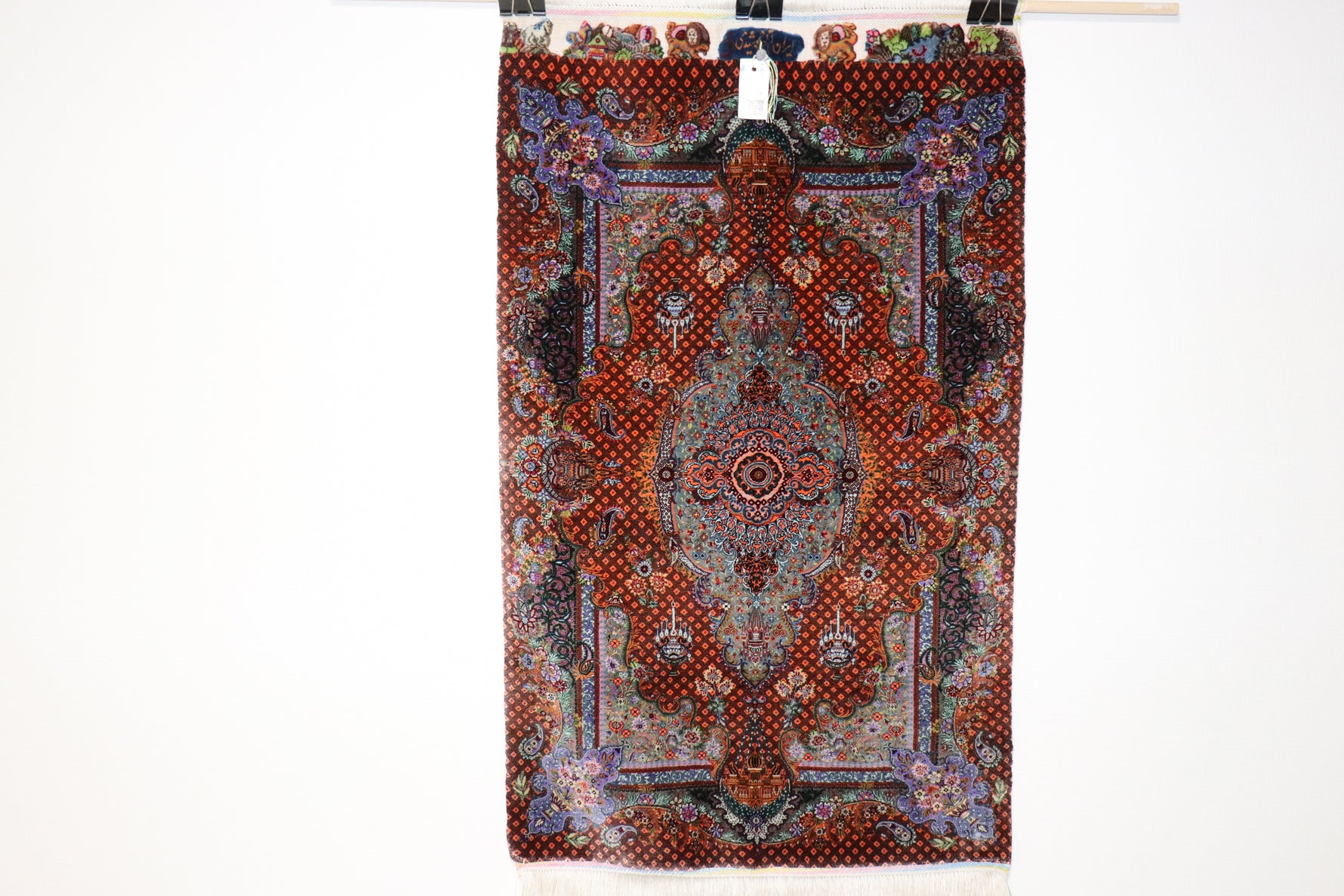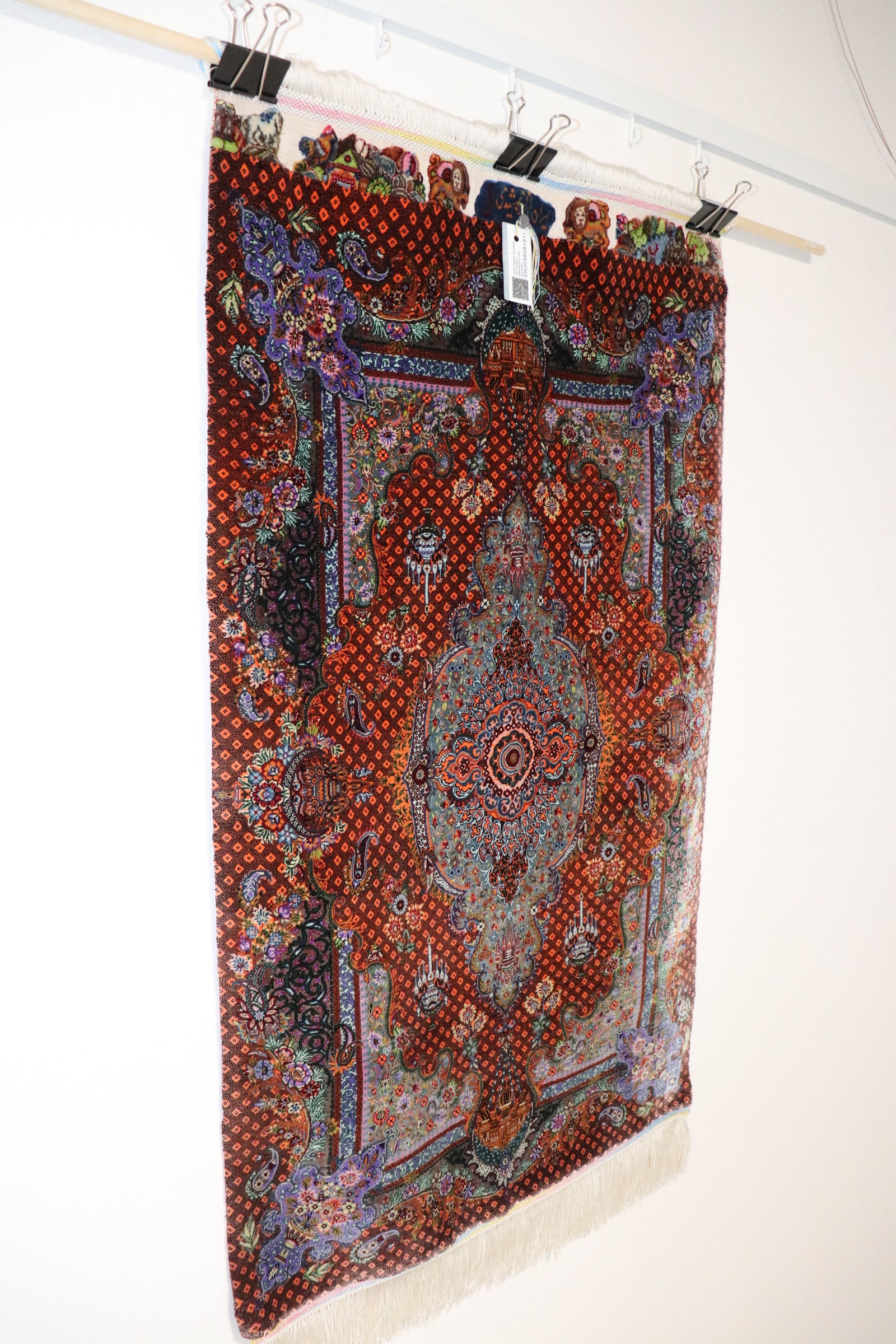 Persian carpet from Qom, 100% silk, Albar Studio original, paisley pattern, small size, perfect for wall decoration, gorgeous masterpiece