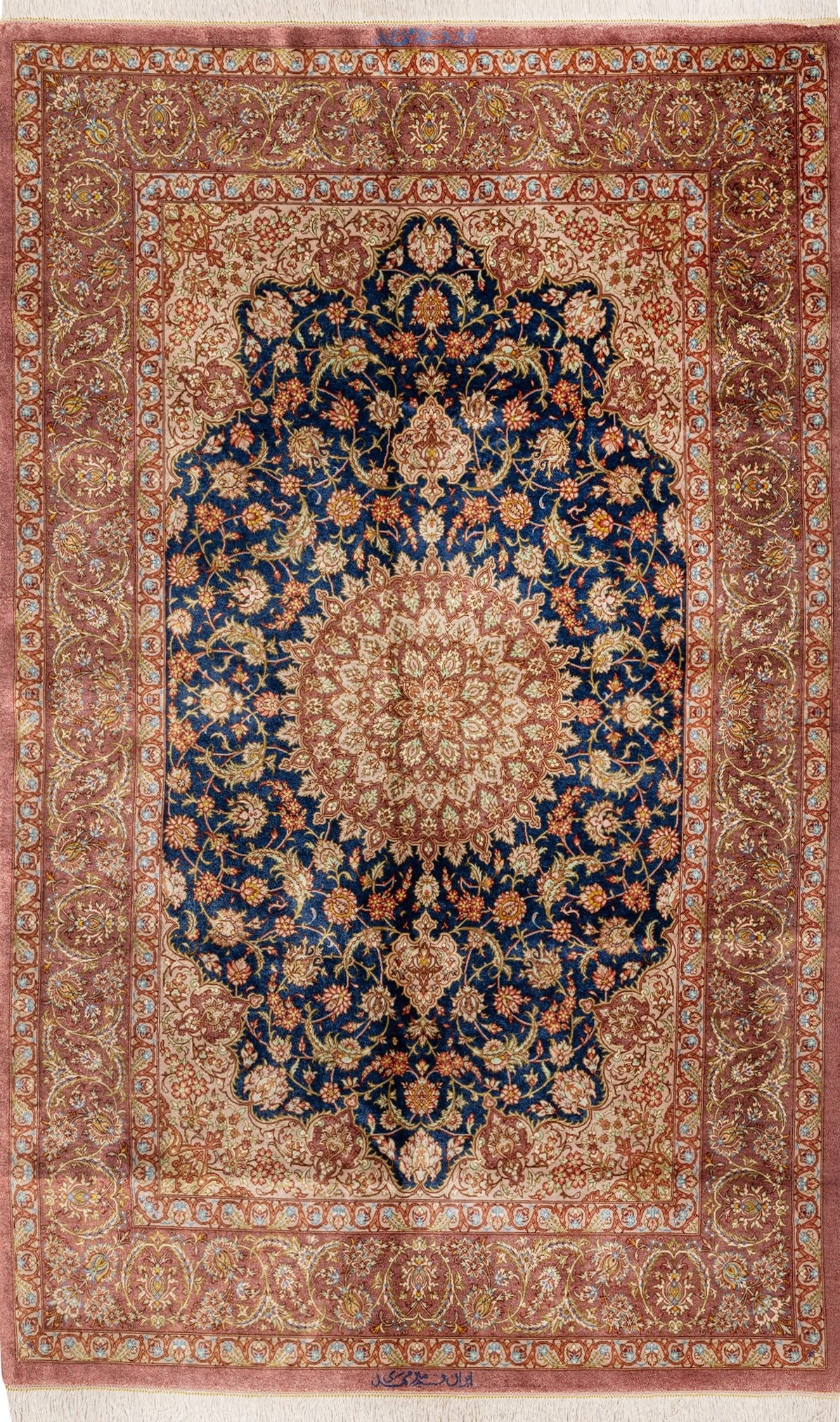 Persian carpet from Qom 100% silk Mirmehidi workshop Living space size