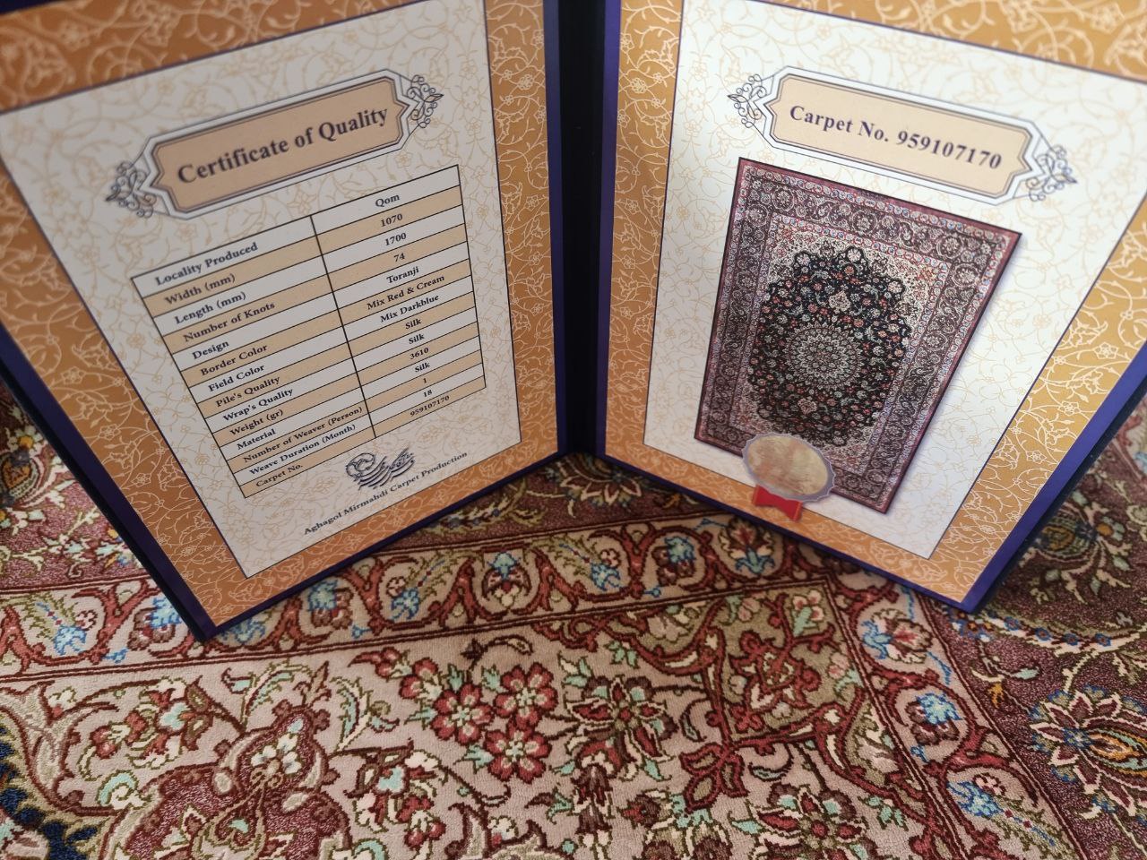 Persian carpet from Qom, 100% silk, Albar Studio original, paisley pattern, small size, perfect for wall decoration, gorgeous masterpiece