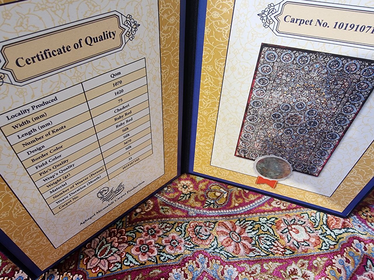Persian carpet from Qom, 100% silk, Albar Studio original, paisley pattern, small size, perfect for wall decoration, gorgeous masterpiece