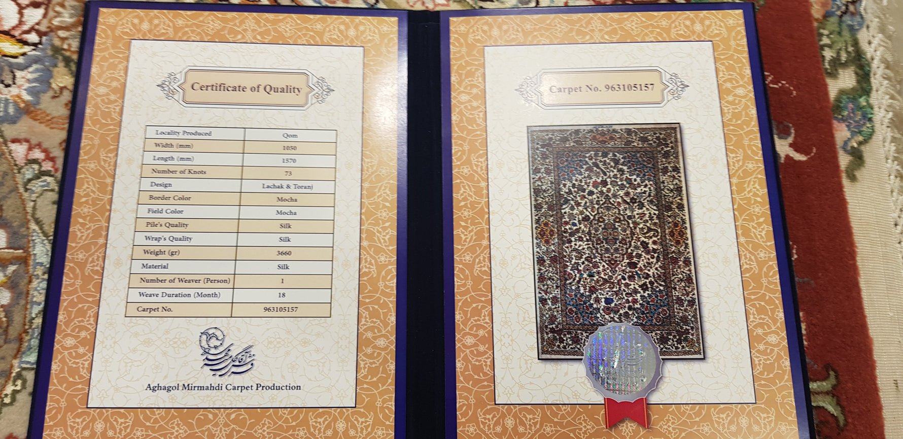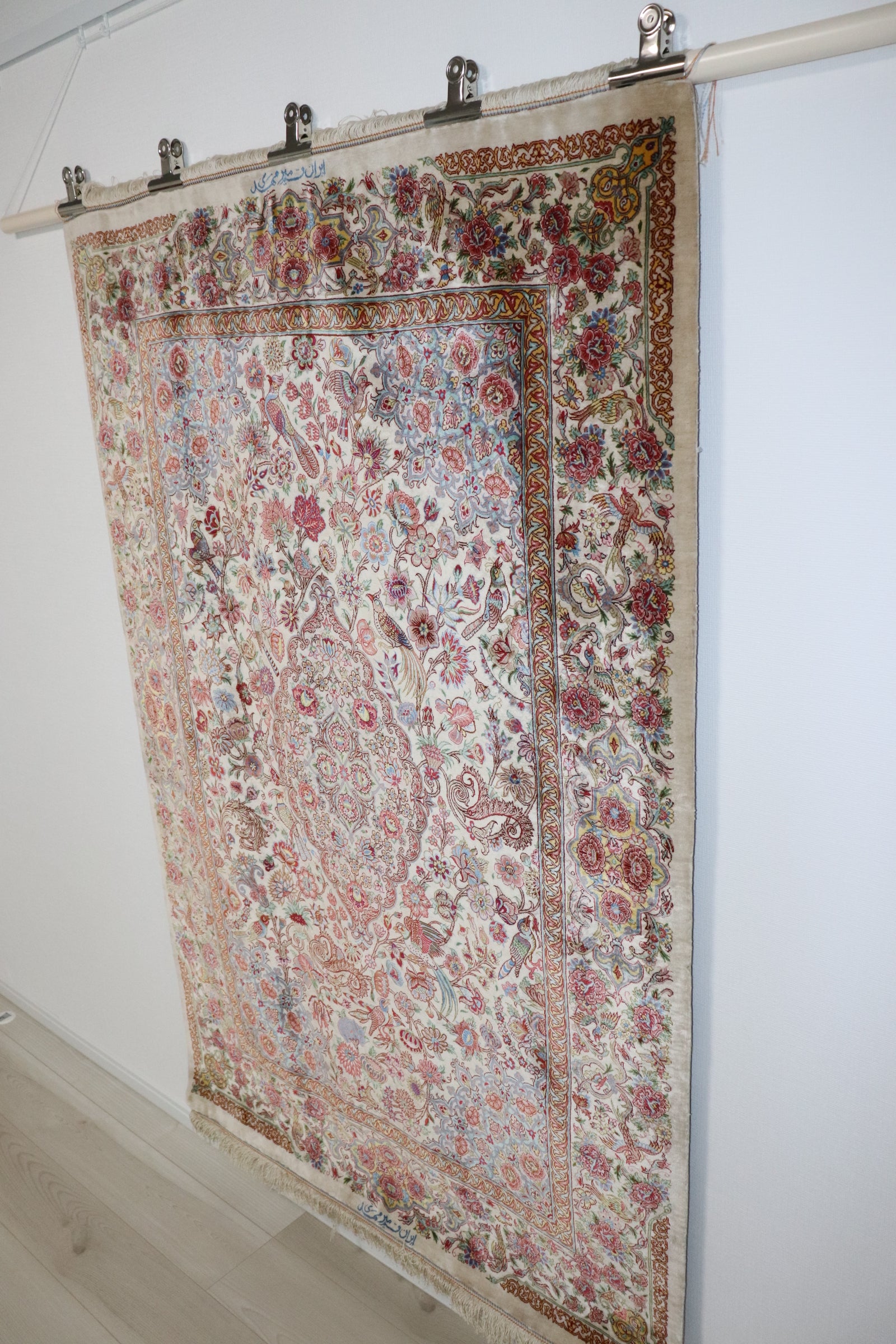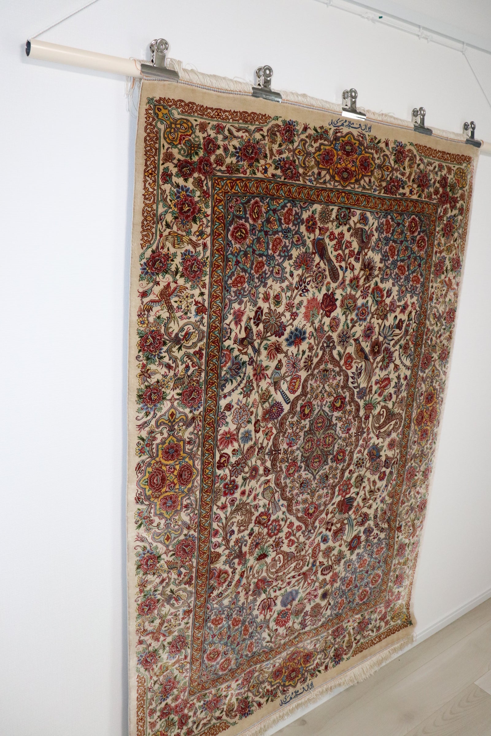 Persian carpet from Qom, 100% silk, Mirmehidi atelier masterpiece, living space size