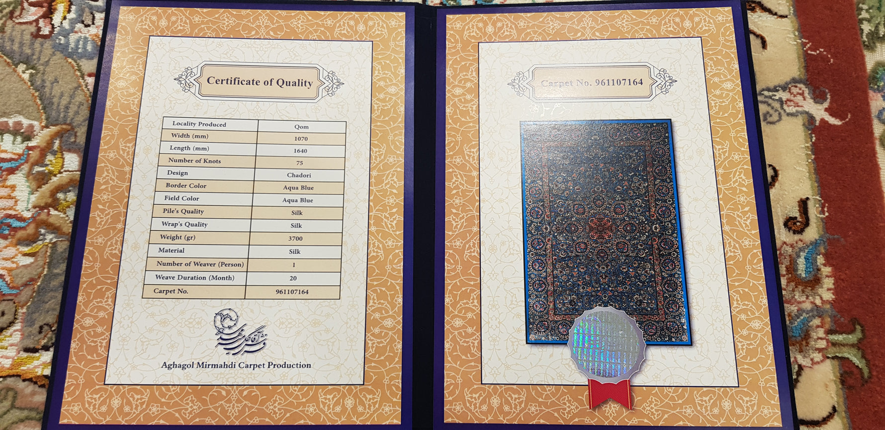 The carpets are made by teenage weavers, and the precision of the weaving is unmatched, making them a miraculous work. The weaving density is 1.1 million knots per square meter, with a total of 1.88 million knots, resulting in a high-density finish. The carpets are made of 100% delicate and lustrous silk, and their texture and luster are of the highest quality in the world.