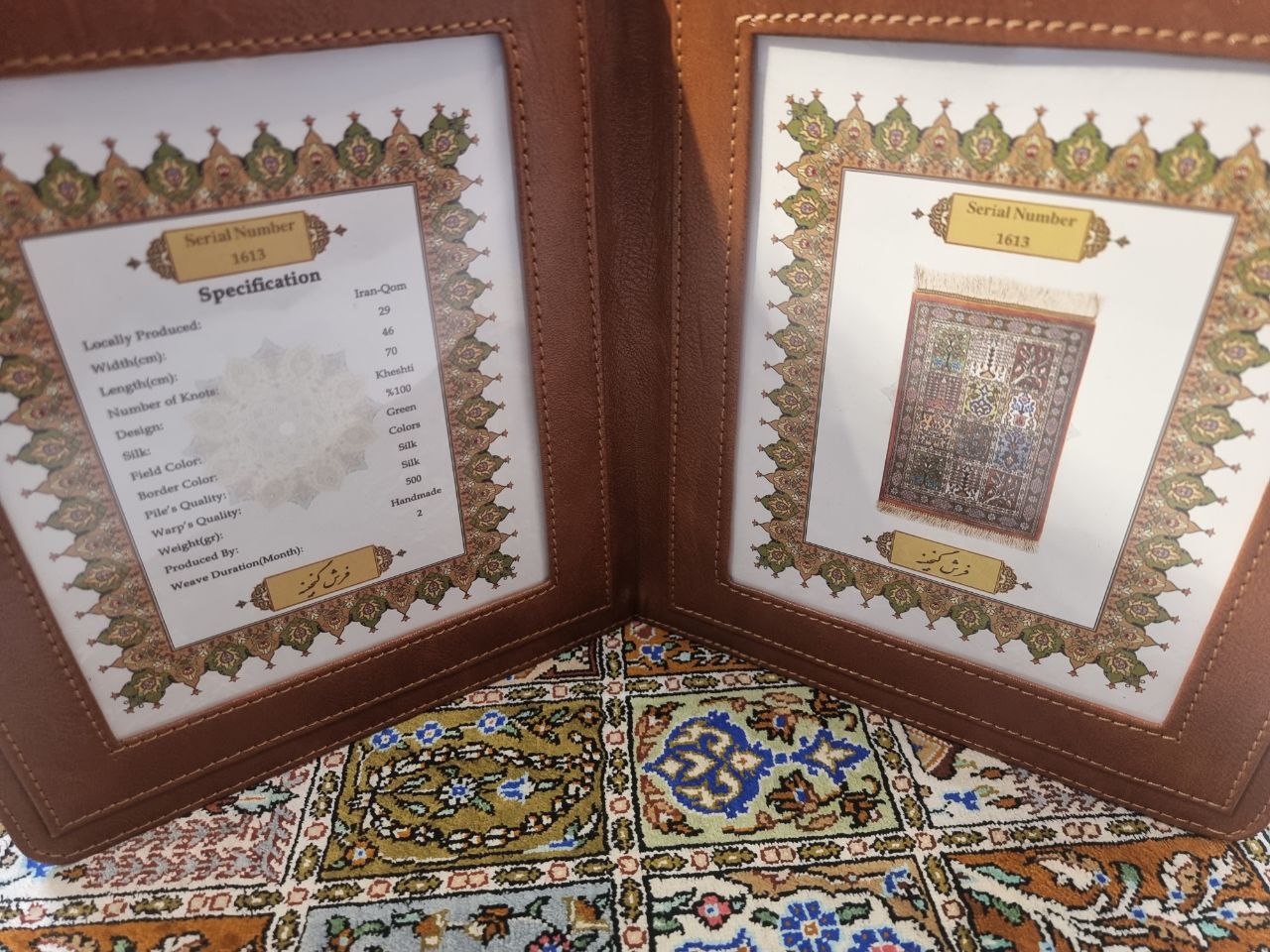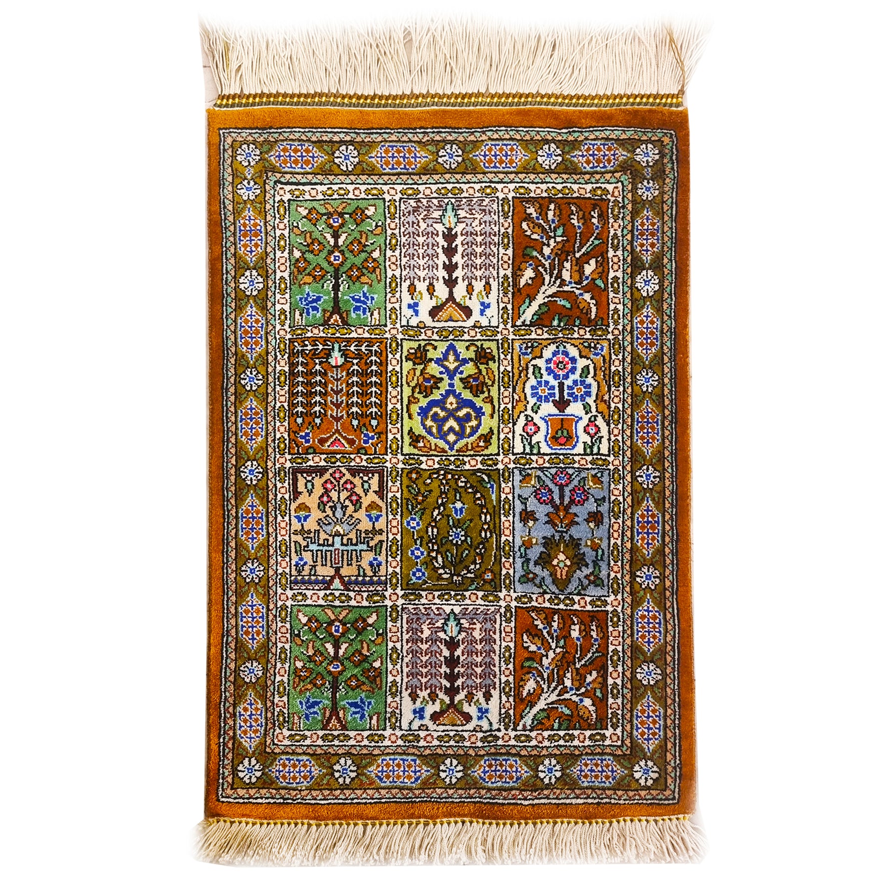 Persian carpet from Qom, 100% silk, Albar Studio original, paisley pattern, small size, perfect for wall decoration, gorgeous masterpiece