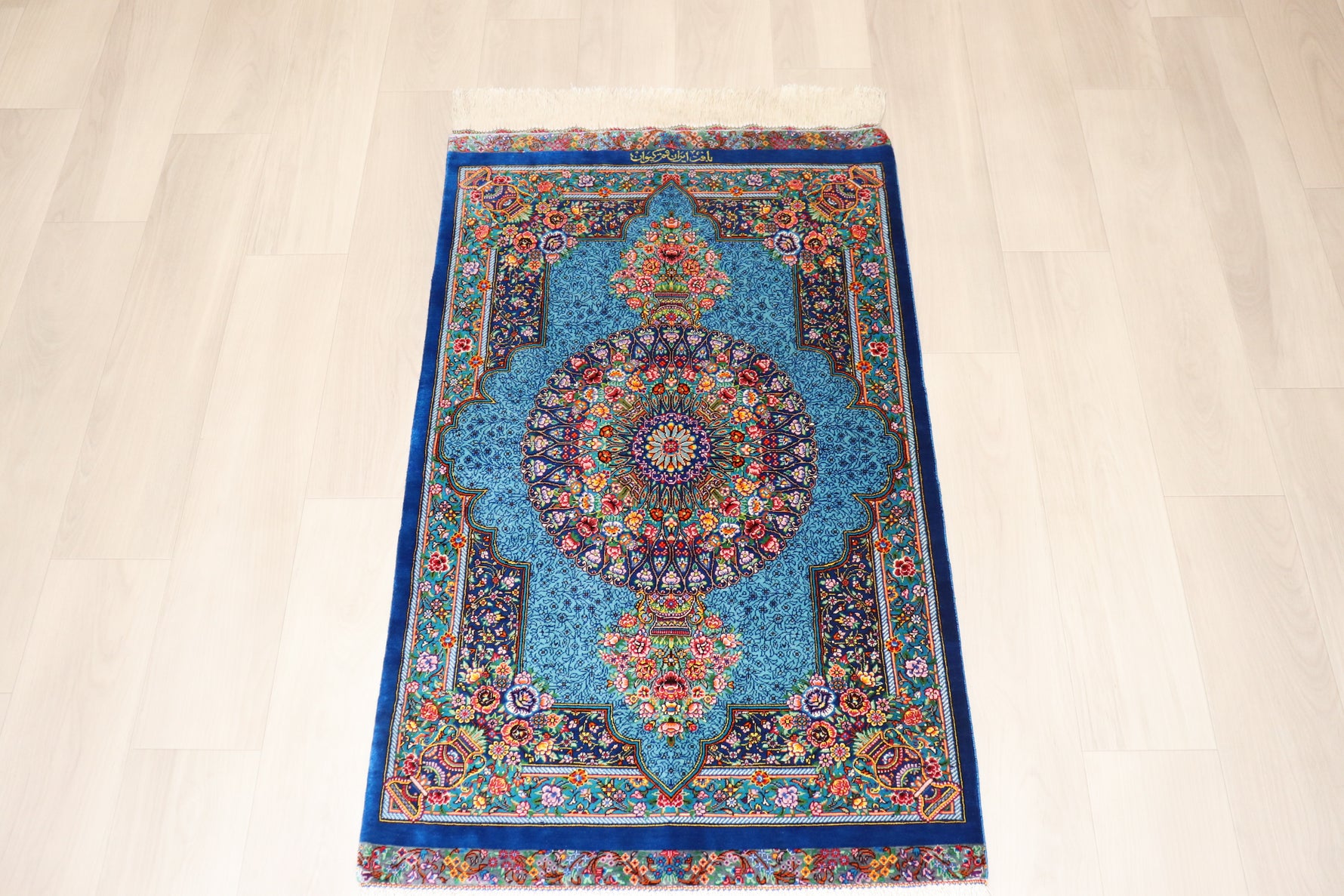 Persian carpet from Qom, 100% silk, Kaywan Kobo, entrance mat size