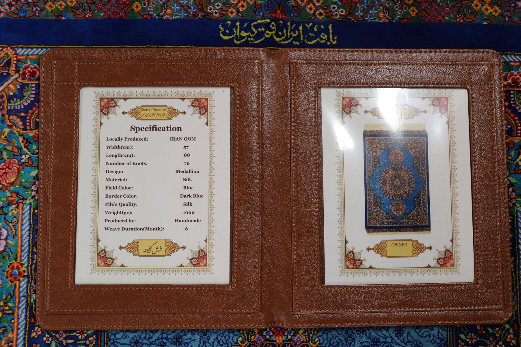 Persian carpet from Qom, 100% silk, Albar Studio original, paisley pattern, small size, perfect for wall decoration, gorgeous masterpiece