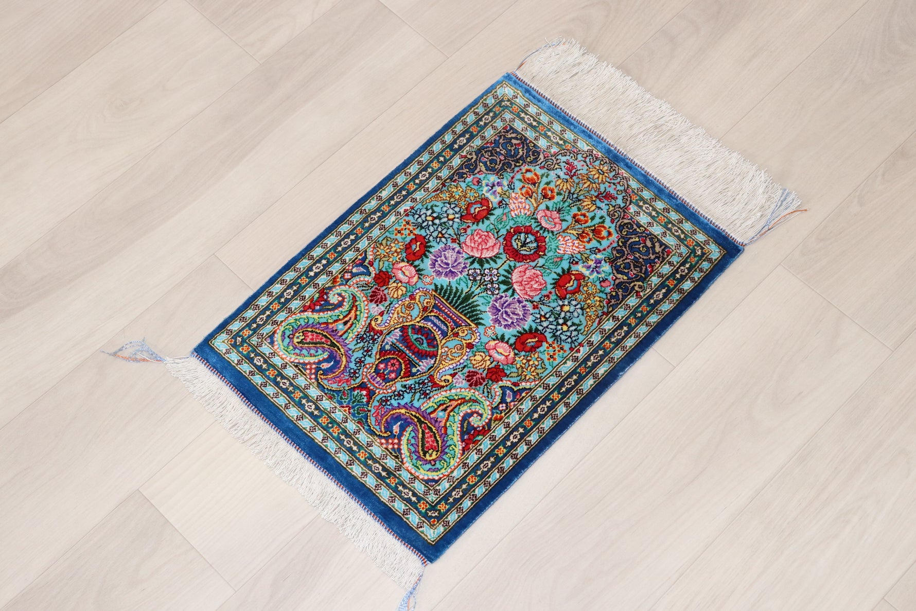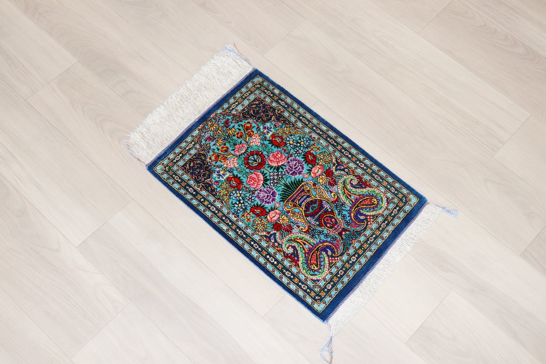 Persian carpet from Qom, 100% silk, Albar Studio original, paisley pattern, small size, perfect for wall decoration, gorgeous masterpiece