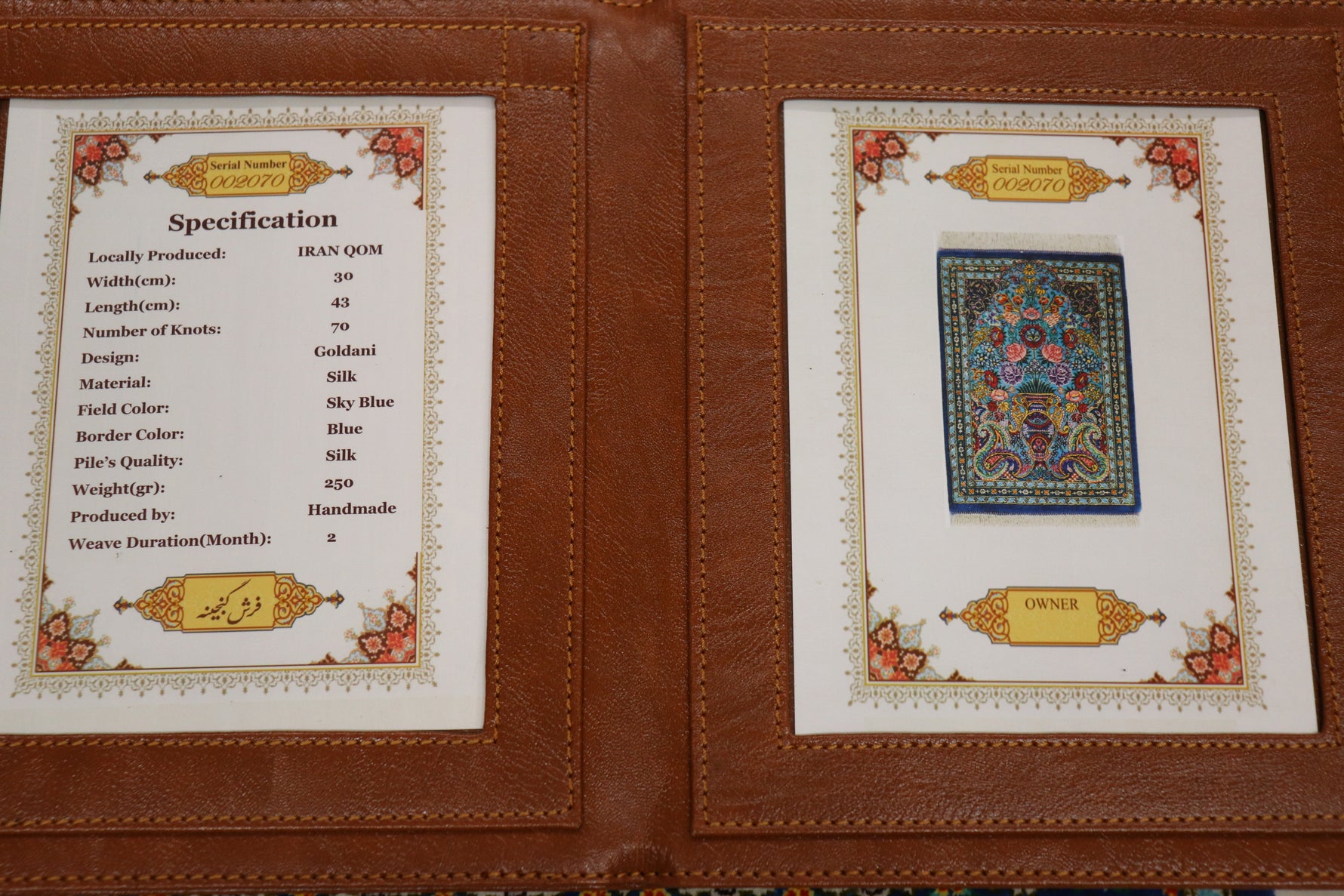 This is an artistic mini silk carpet that combines Persian tradition and beauty.
