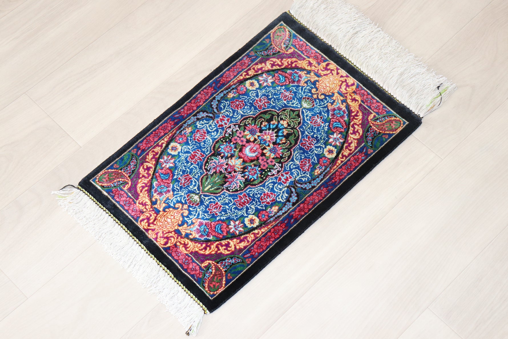 Persian carpet from Qom, 100% silk, Albar Studio original, paisley pattern, small size, perfect for wall decoration, gorgeous masterpiece