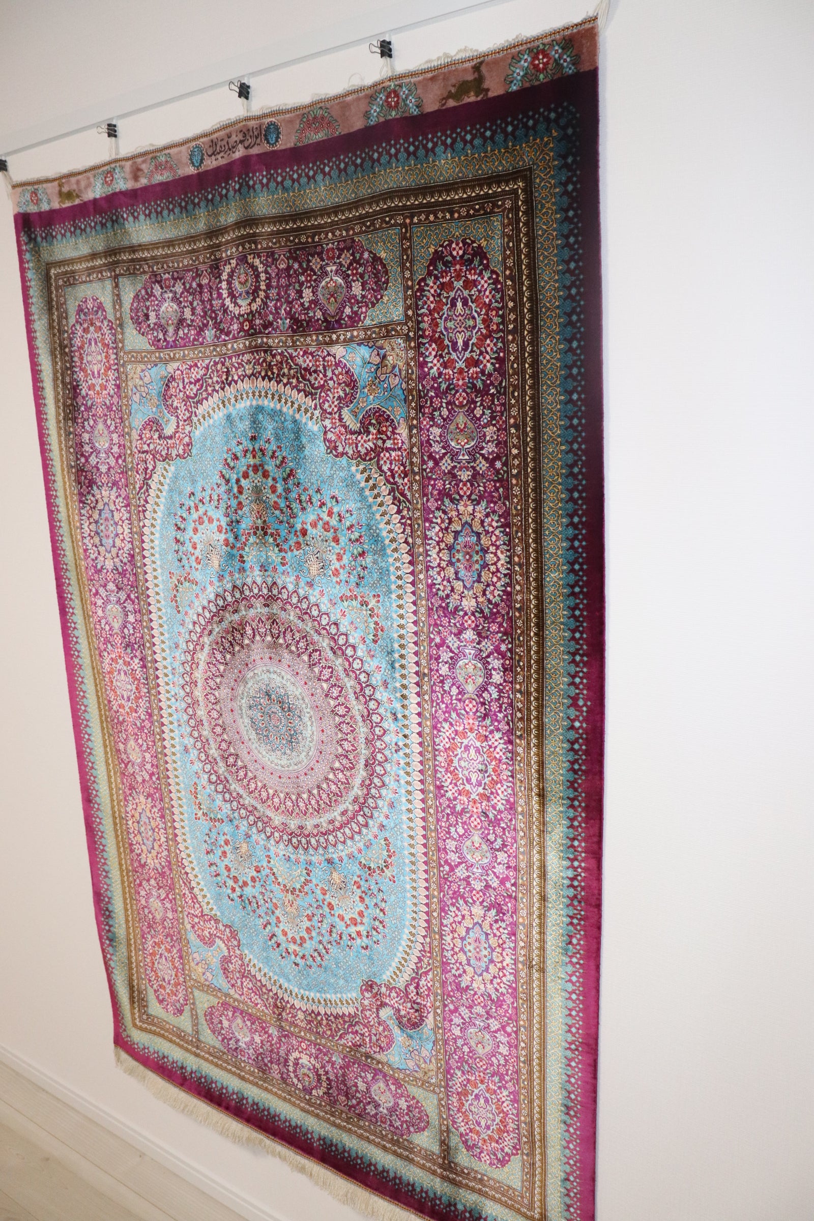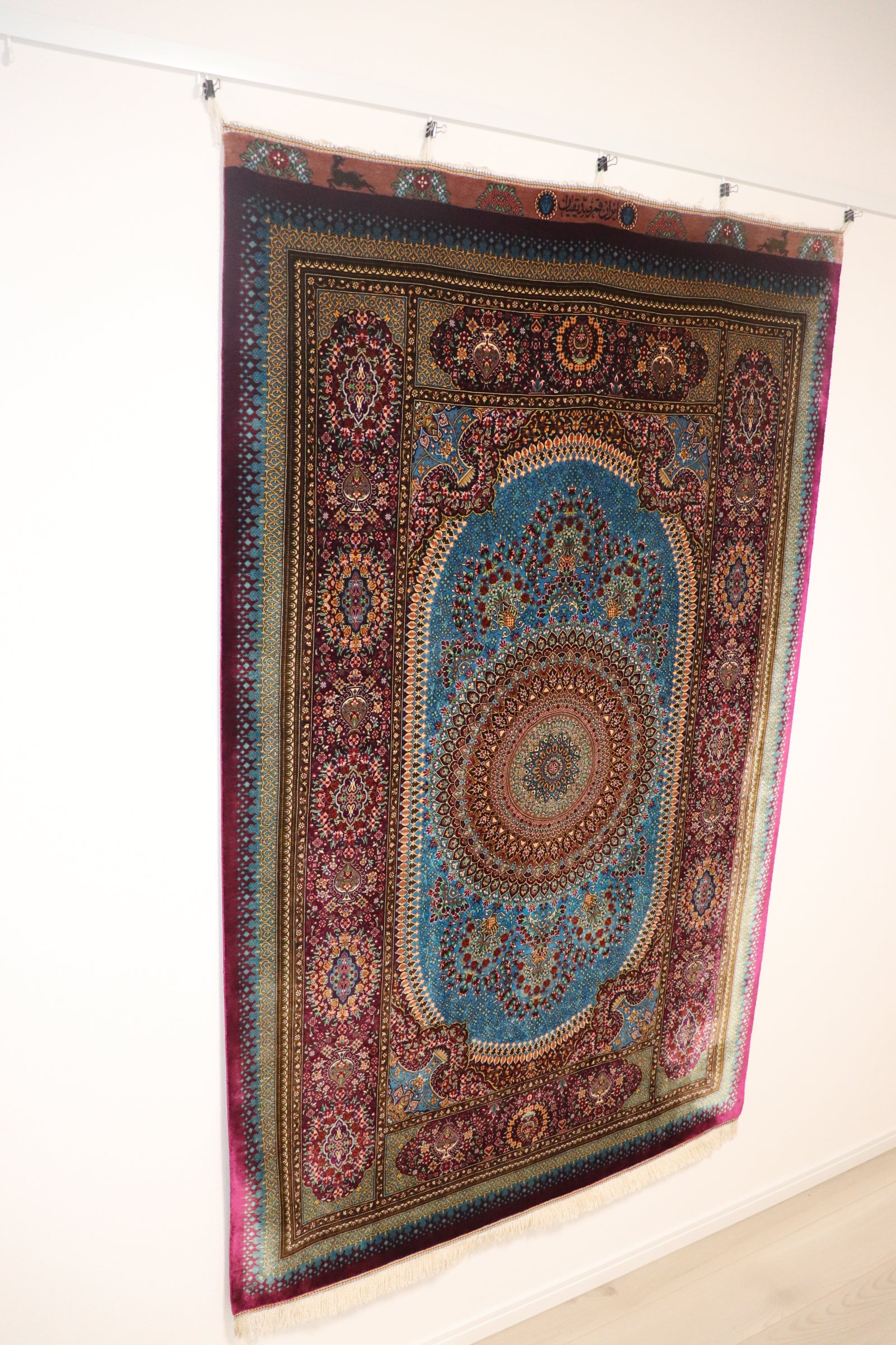 Persian carpet from Qom, 100% silk, Albar Studio original, paisley pattern, small size, perfect for wall decoration, gorgeous masterpiece