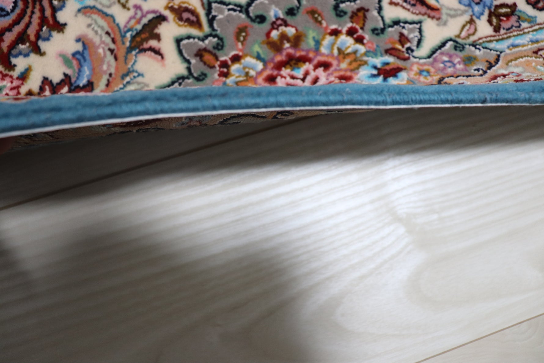 ■おすすめの用途 イスファハーンの絨毯は、その格調高さから、応接間や役員室、クラシックなインテリアのリビングに最適です。 特に、マホガニーなどの重厚な家具や、淡い色のソファとの相性は抜群。敷くだけで空間の「格」を数段引き上げる、まさに王道のペルシャ絨毯です。