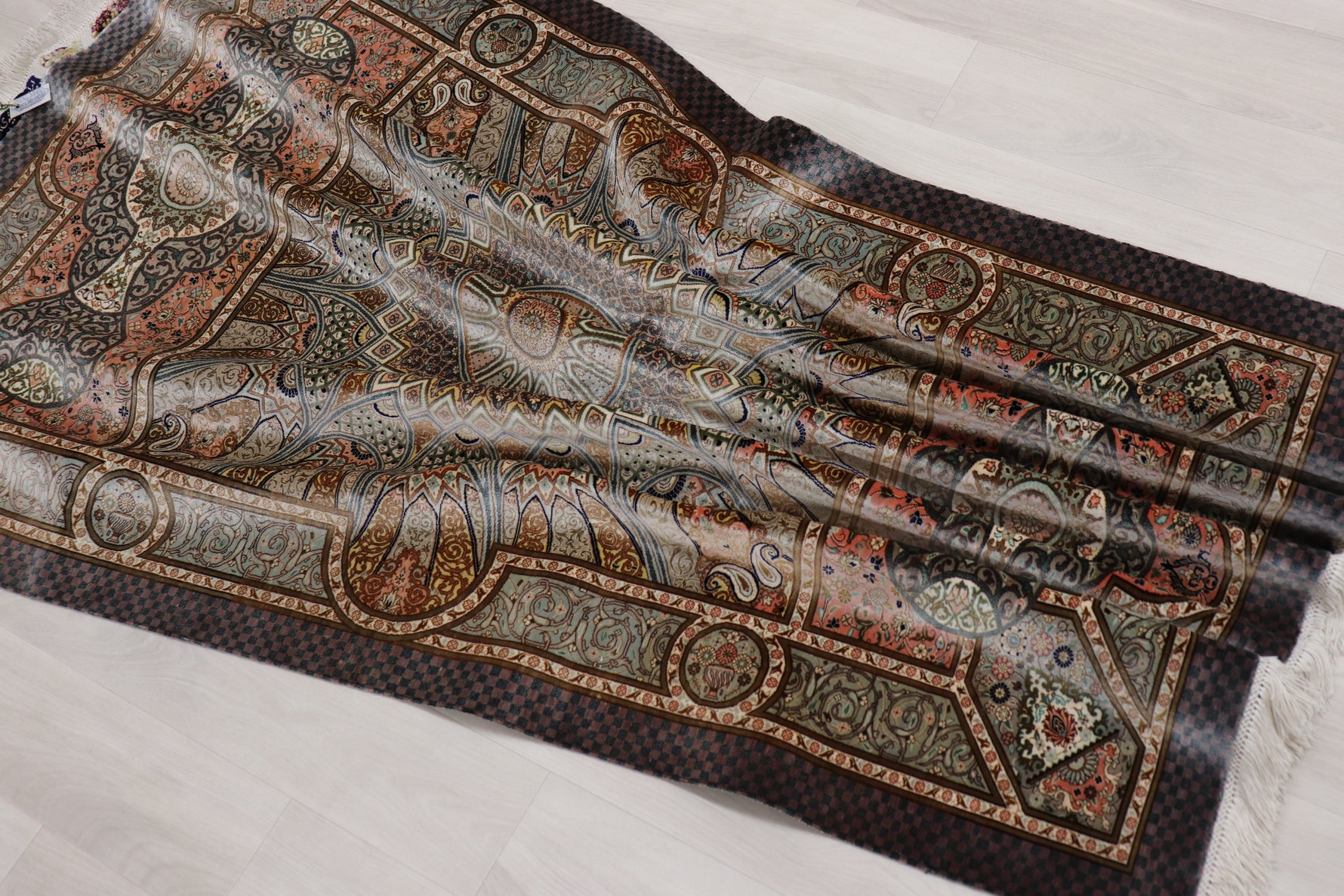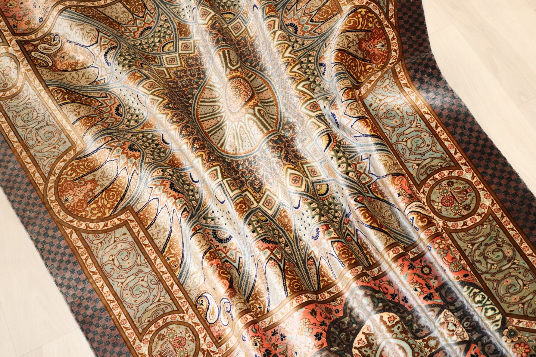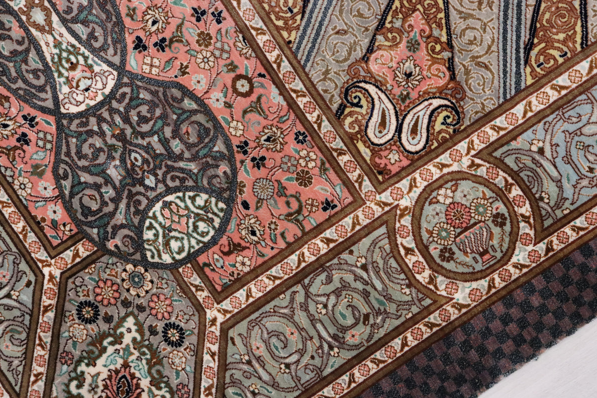 クム産シルクの頂点、ジャムシディ工房が到達した、織物の限界に挑む一枚です。