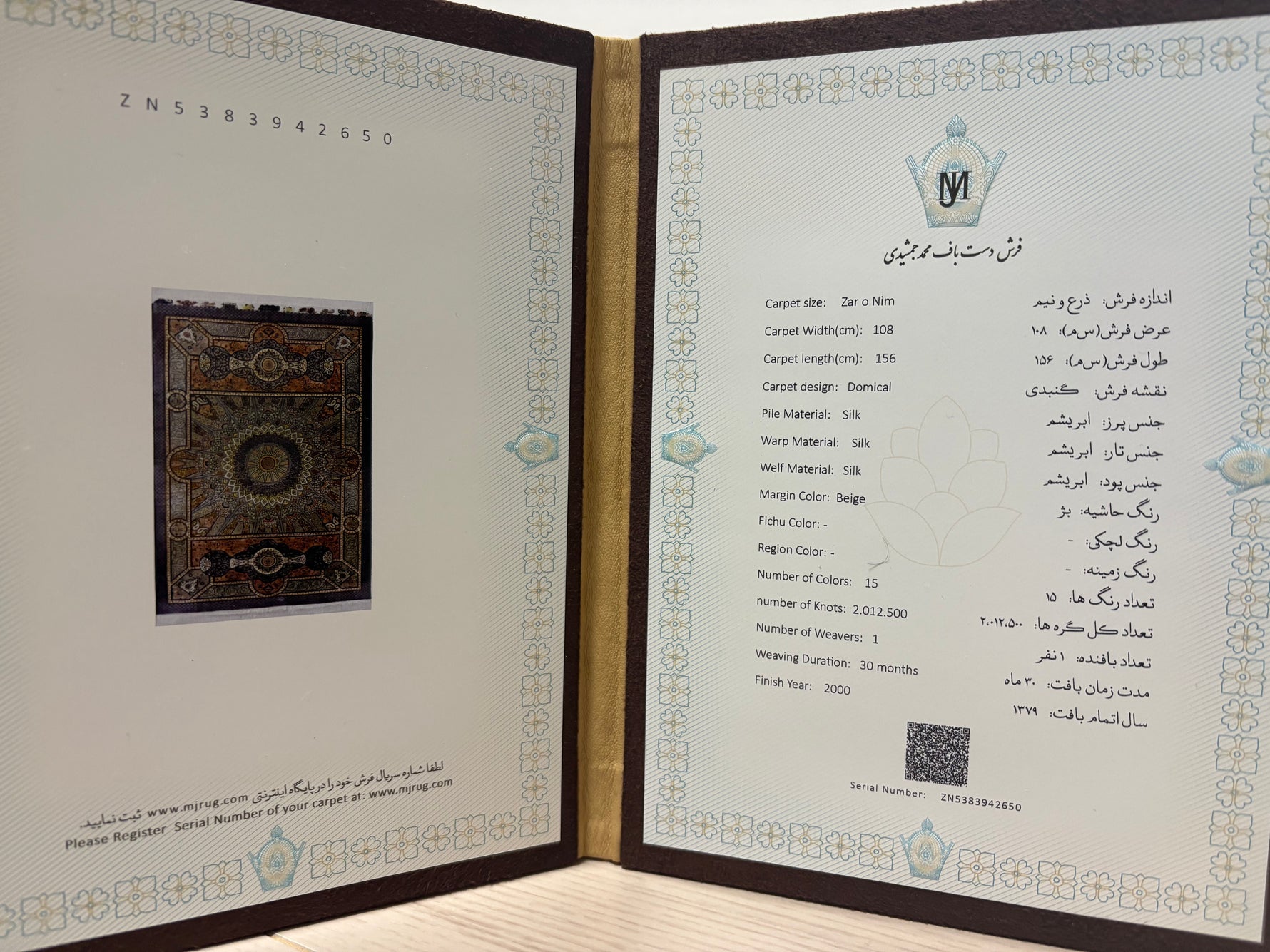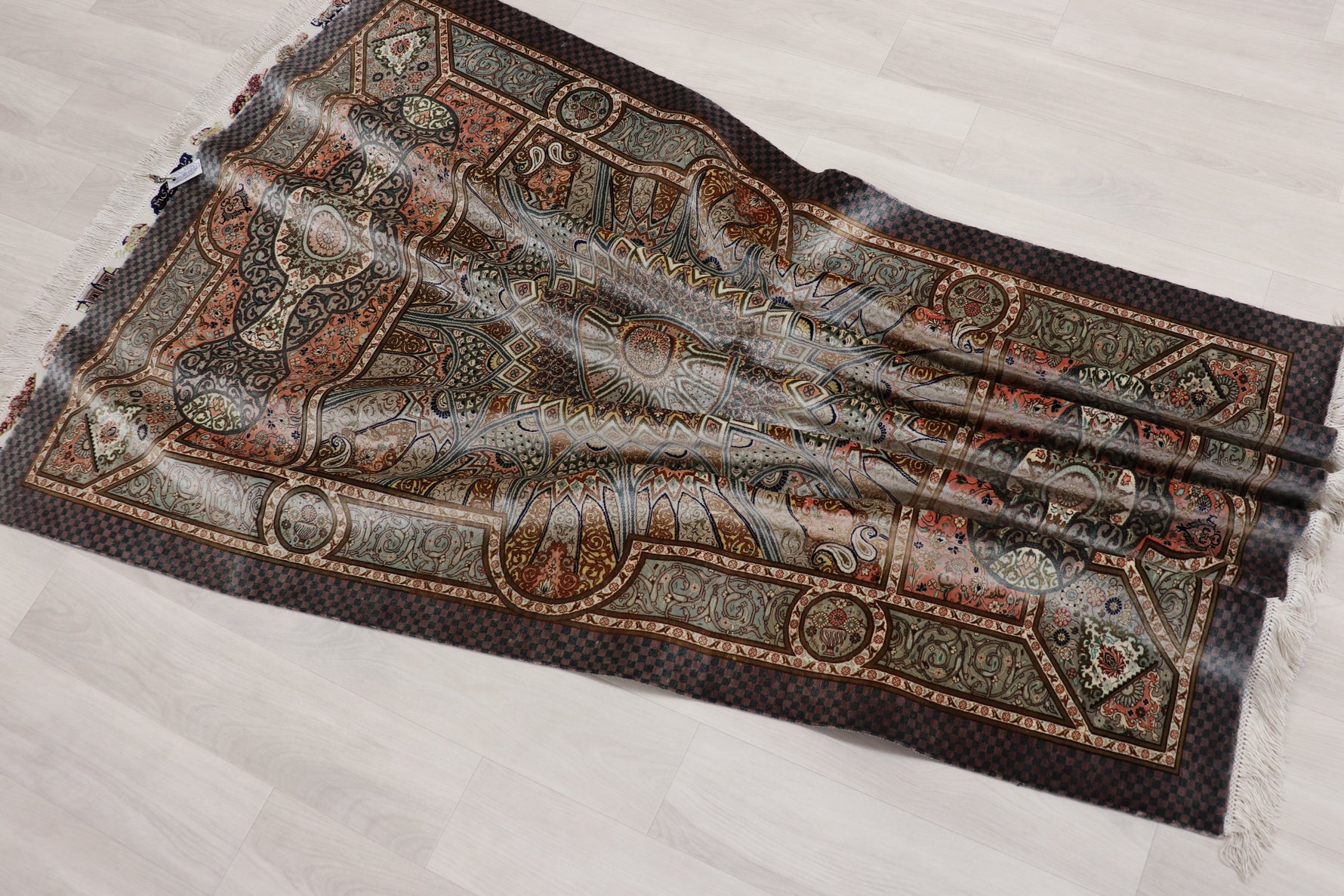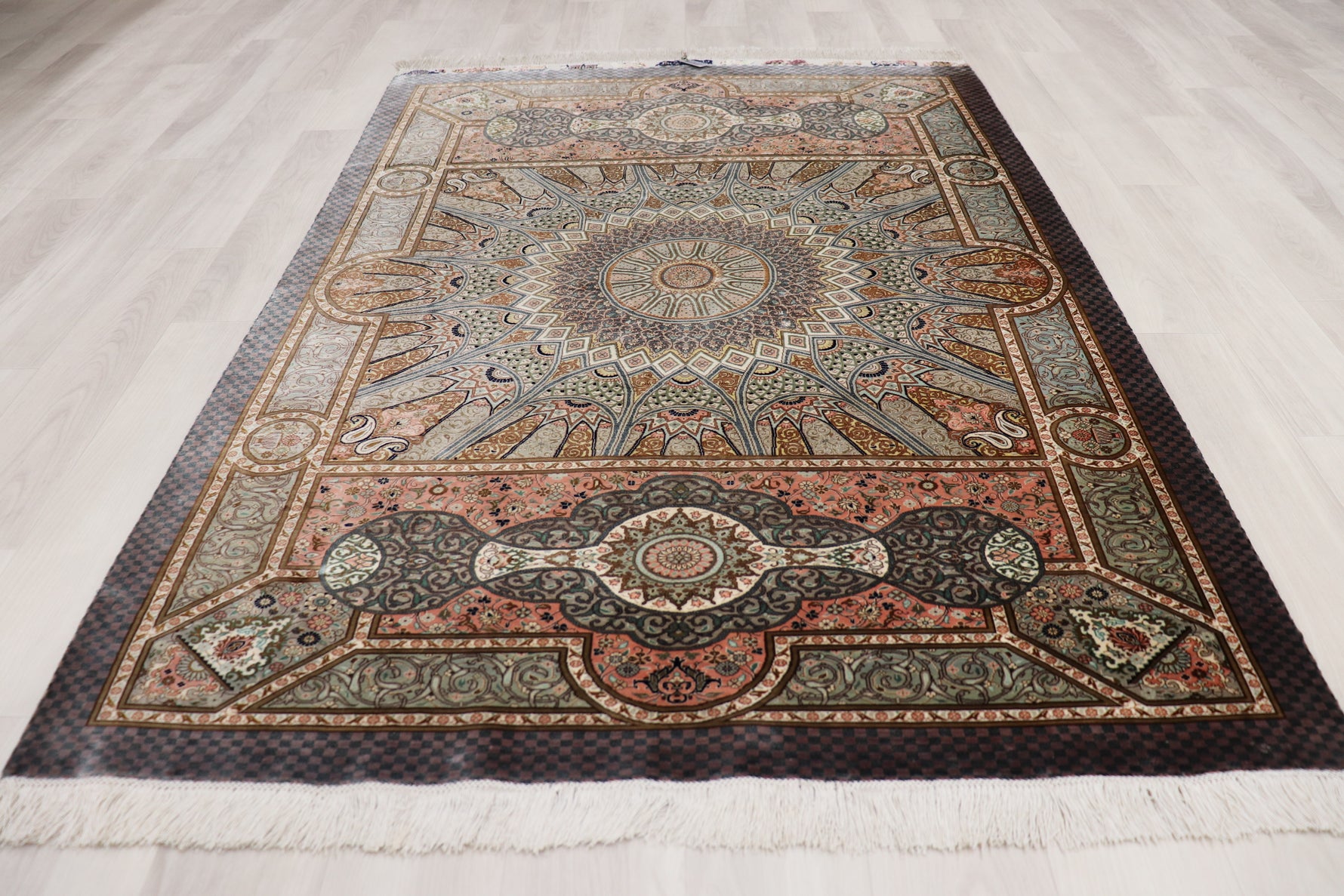 クム産シルクの頂点、ジャムシディ工房が到達した、織物の限界に挑む一枚です。