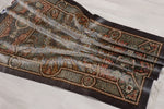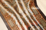 ■金属のような「鉱物的」な色彩 配色は、甘さを排したブロンズ、シルバーグレー、アンティークゴールドといった「重厚な色彩」で構成されています。 シルクの光沢と相まって、それはまるで精密な金属細工や、古代の石造建築のような静謐(せいひつ)な美しさを放っており、モダンなインテリアや書斎に劇的な深みを与えます。