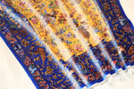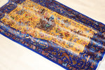 かつてバハラーム王は、2頭の飢えたライオンの間から王冠を掴み取ることで、自らの勇気と王としての資質を証明したと伝えられています。本作には、馬に跨り弓を引く王や貴族、そして猛獣たちが躍動感たっぷりに描かれており、まさにその「王権と力」の象徴とも言えるドラマチックなシーンが、一本の映画のように織り込まれています。静かな花柄とは一線を画す、生命のエネルギーに満ちた「動」のデザインです。