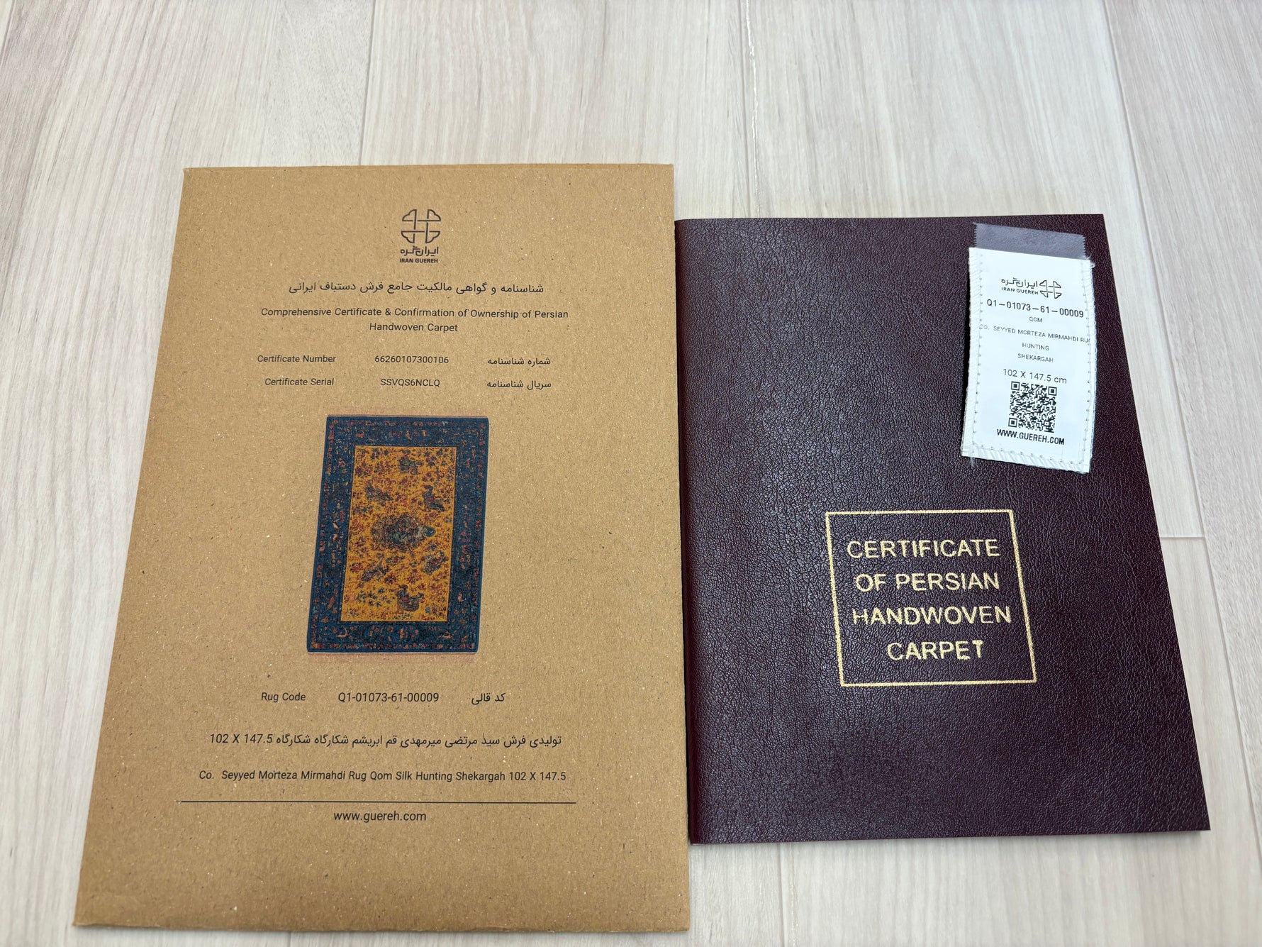 絨毯の品質証明書