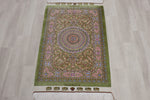 波斯地毯,100% 真丝,产自库姆 [Albar Kobo],热门款式,深绿与蓝绿交相辉映,美不胜收,是玄关地垫的理想之选。ID14013