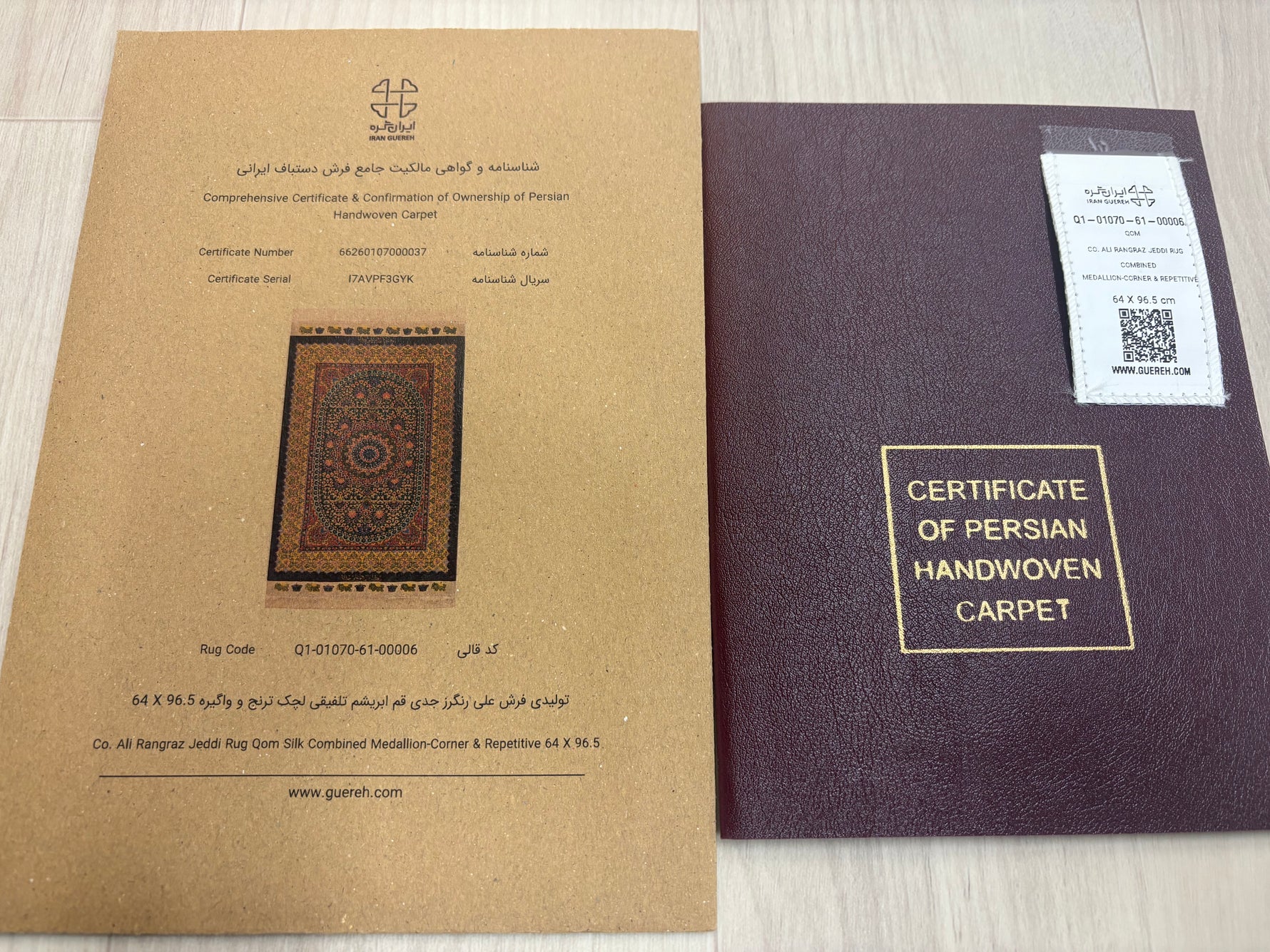 世界的に名高いペルシャ絨毯の産地・クム(Qom)の中でも、名門として知られる「ジェッディ工房」による、総シルクの傑作です。