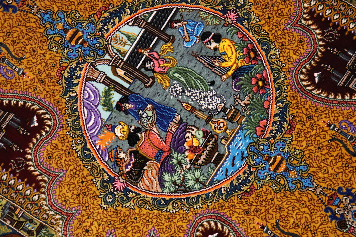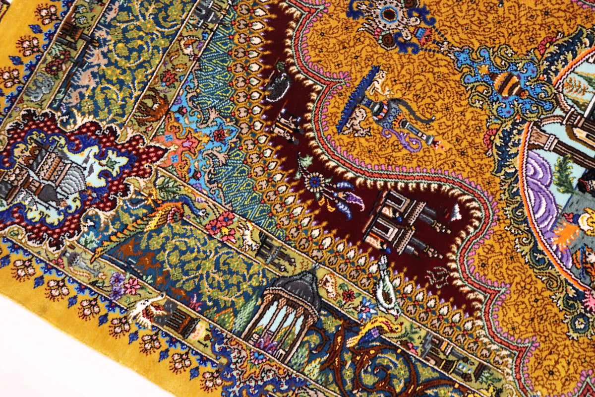 悠久の時を超える、古代ペルシャの栄華 名門【ジャムシディ】が蘇らせた歴史絵巻 クム産シルク ID25033