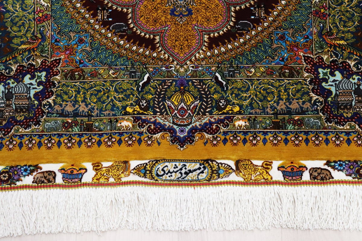 クム産シルクの最高峰、「ジャムシディ(Jamshidi)工房」のマスウード氏による、ペルシャの誇り高き歴史を織り込んだ傑作です。