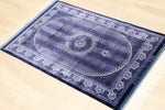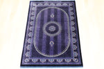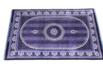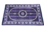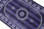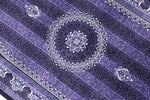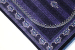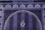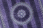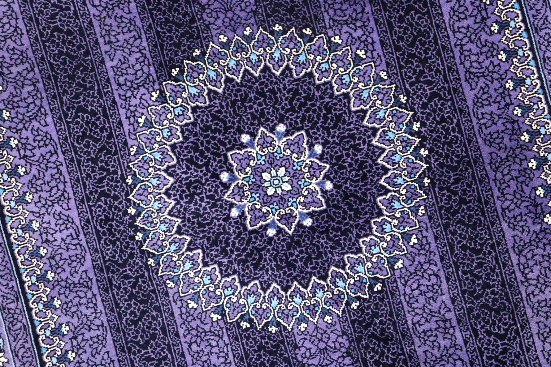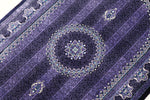 ■デザインの魅力:気品あふれる「紫」の世界 フィールドからボーダーに至るまで、深く艶やかな「紫」で統一された、非常に珍しいカラーリングです。 古来より「高貴な色」として愛されてきた紫色のフィールドには、縦に伸びる繊細な縞模様(ストライプ)のような地紋が描かれ、中央のメダリオンと四隅のコーナー装飾が宝石のように浮かび上がります。 光の当たり方によって、深いバイオレットから鮮やかなアメジスト色へと表情を変える様は、まさに神秘的です。
