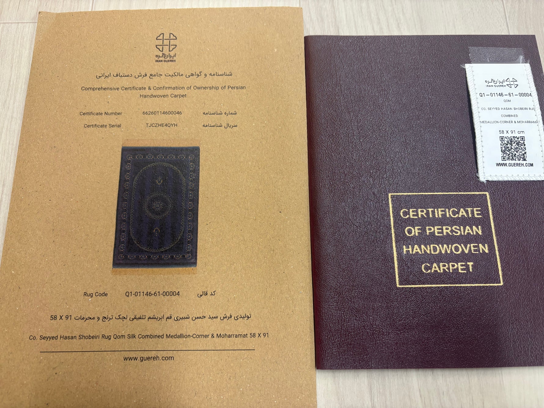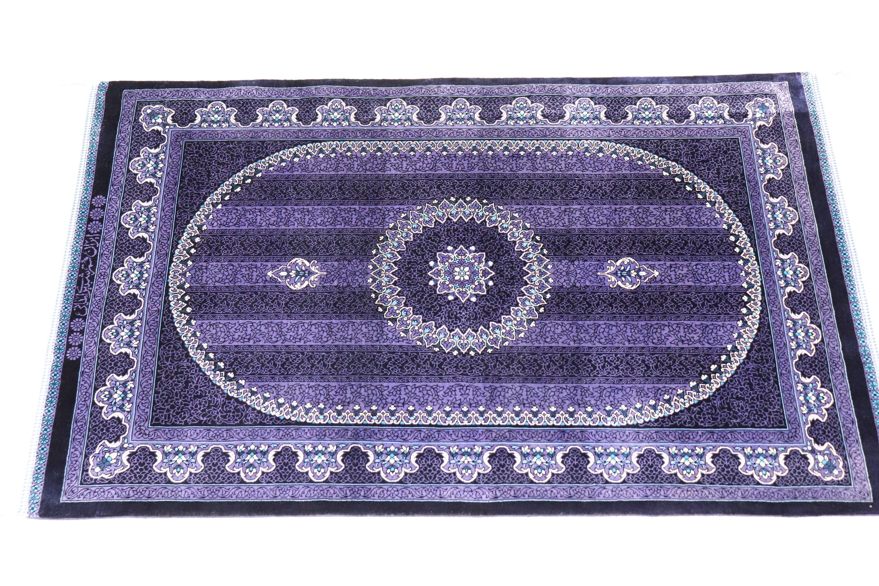 ペルシャ絨毯の産地・クムの中でも、独自の世界観を持つ「ショベイリイマニ(Shobeiri Imani)工房」による、極めて希少な紫(パープル)を基調とした作品です。